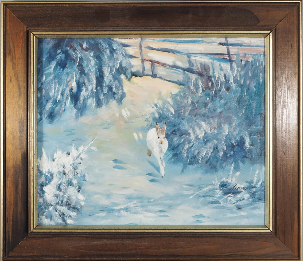 PER ÅKERED. Öl auf Leinwand, "Hase im Schnee".