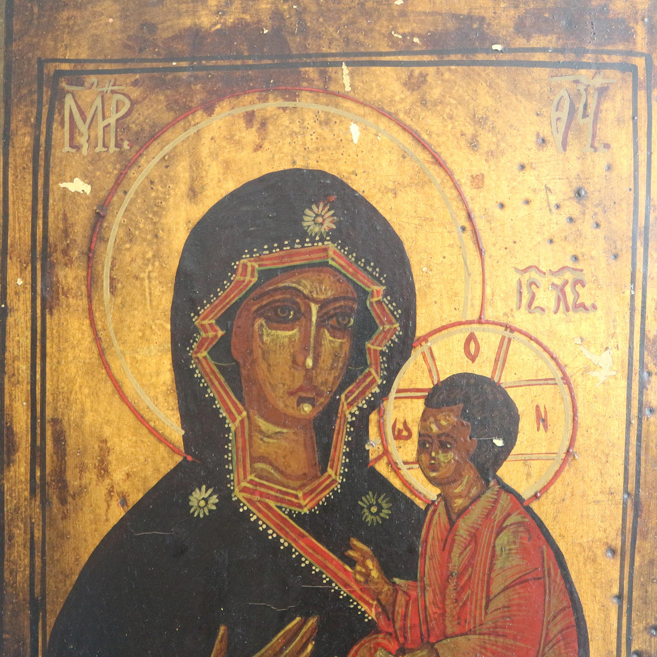 Griechenland, Schwarze Madonna Ikone, 20. Jahrhundert, handbemalt, Maße: 40 x 28 cm.