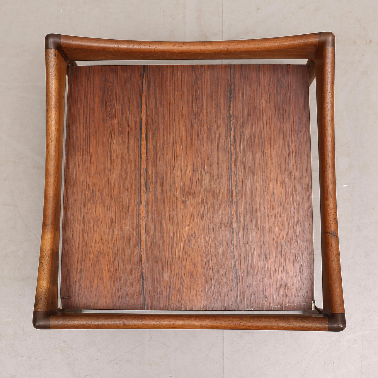 Ausführung Sören Willadsen, Vejen, Dänemark, um 1960/70er Jahre, Jacaranda-Rahmen, Aluminiumblech einseitig mit Palisander-Imitation.
