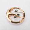 Brosche aus 18 Karat Gold mit drei facettierten grünen Steinen.