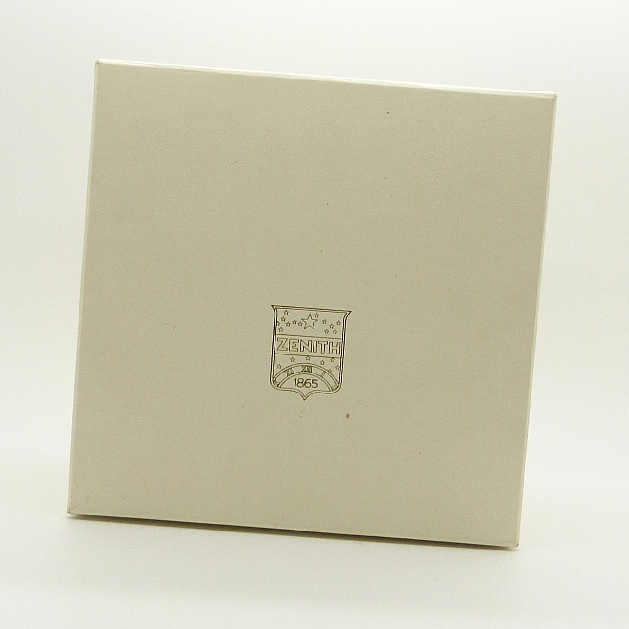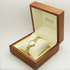Diese vergoldete Uhr wird in einer Zenith-Holzschatulle mit Zenith-Wappen und -Armband präsentiert.
