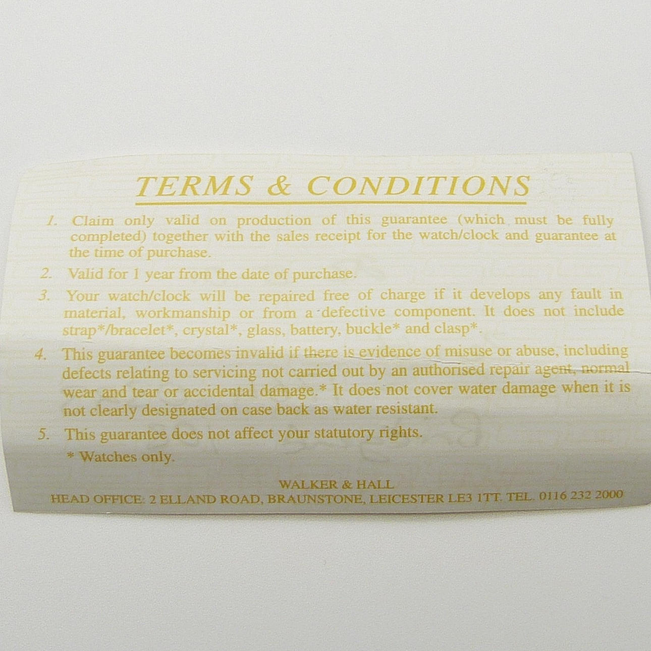 Ursprüngliches Verkaufsdatum der Uhr: 28. August 2001, vom Einzelhändler Walker & Hall, Leicester.