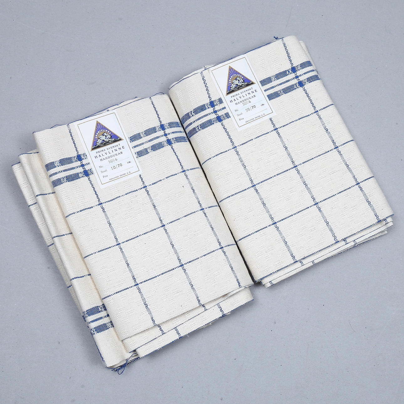 2 unbeschnittene Blätter mit je 6 Handtüchern, Leinen, Oskarsström.