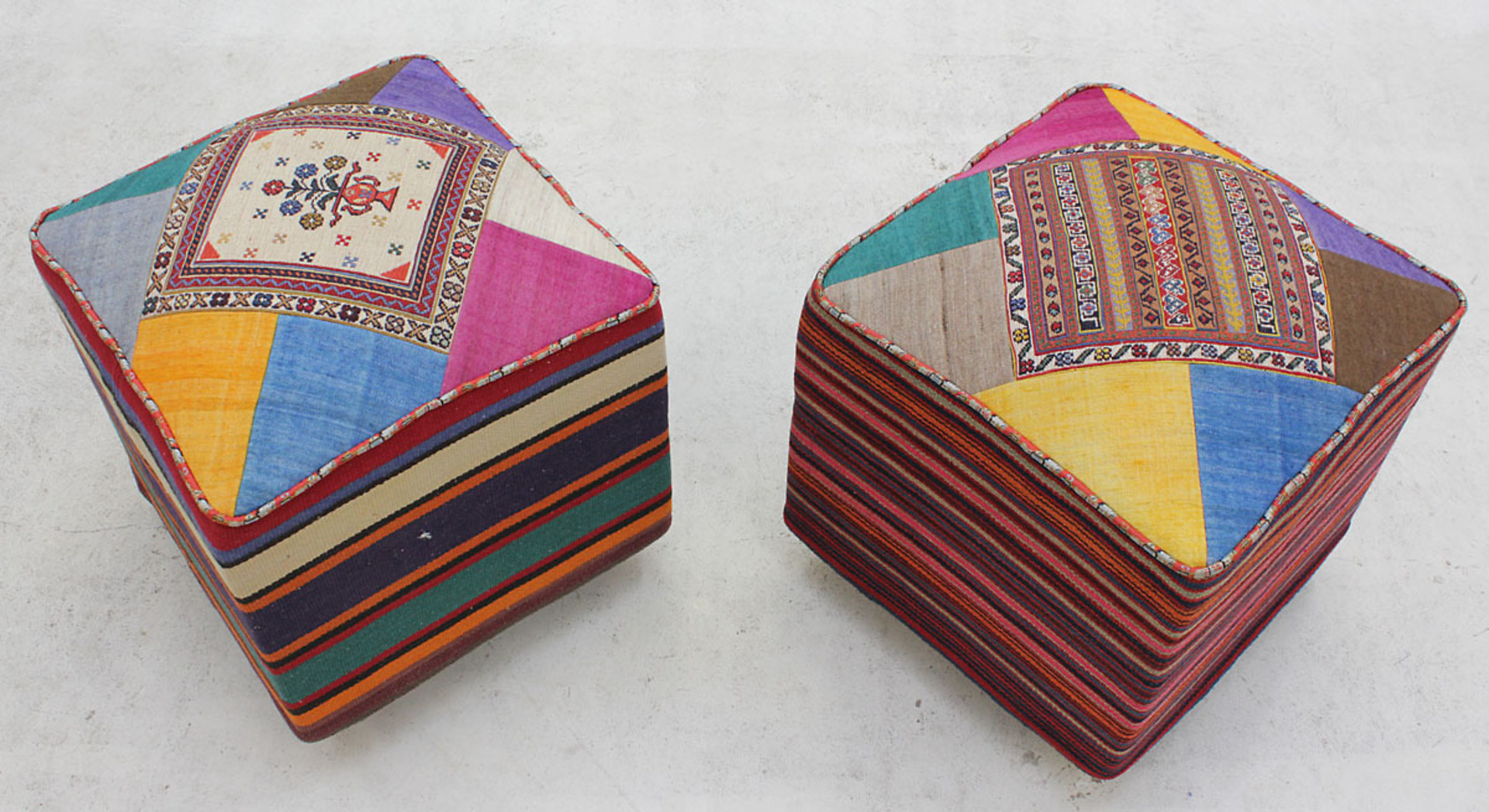 169728. PALETTEN, 2 Stück, mit Kelimstoff bezogen.