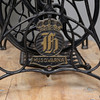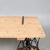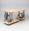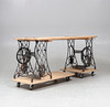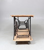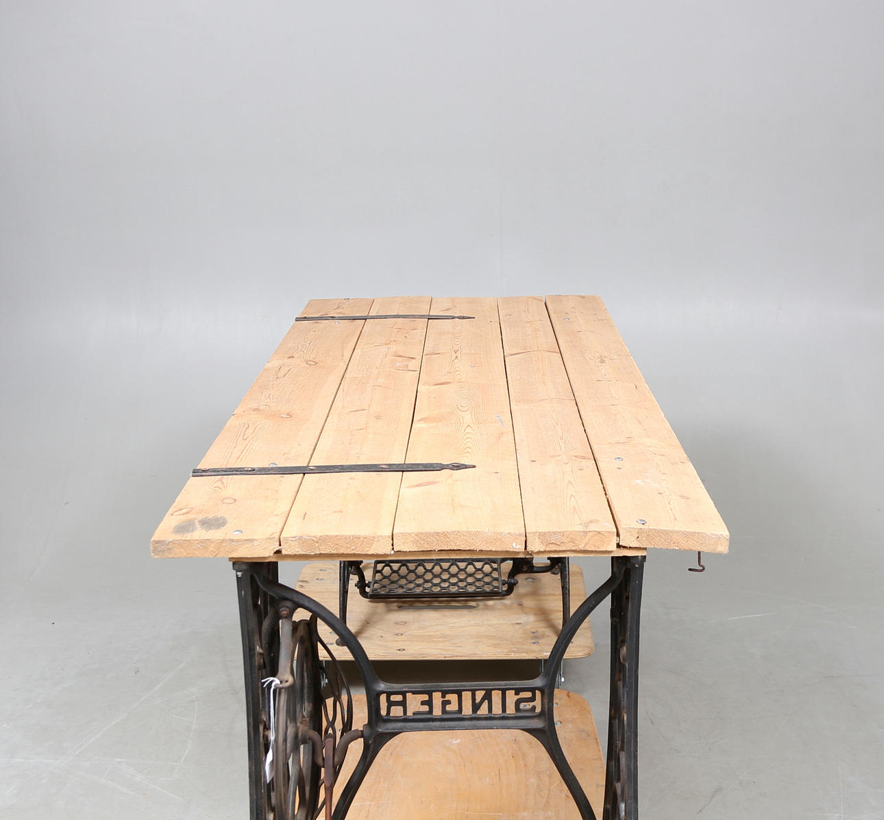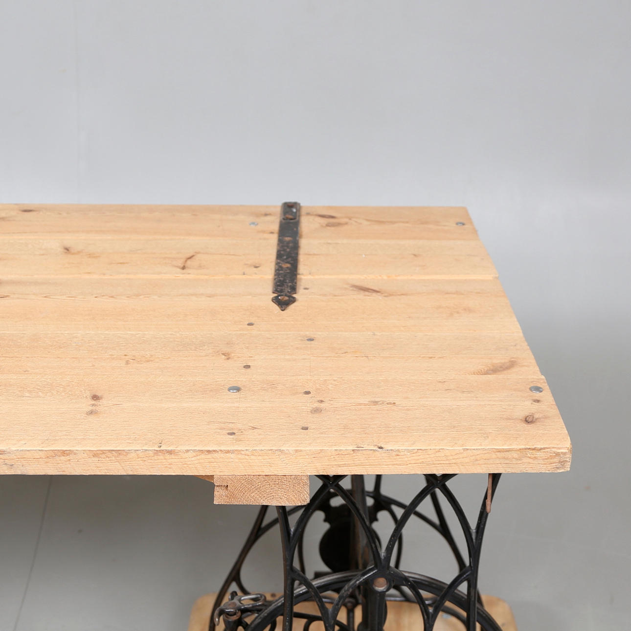 Tür und Nähmaschinenfahrwerk überarbeitet. Länge ca. 170cm. Breite ca. 74cm. Höhe ca. 76cm.
