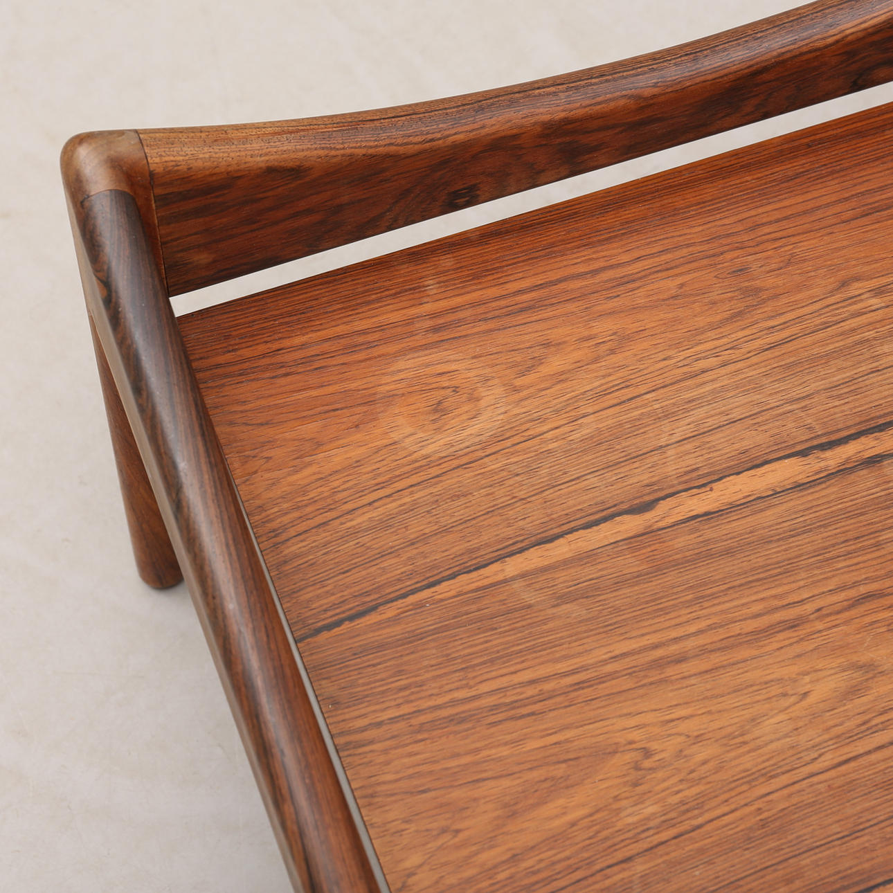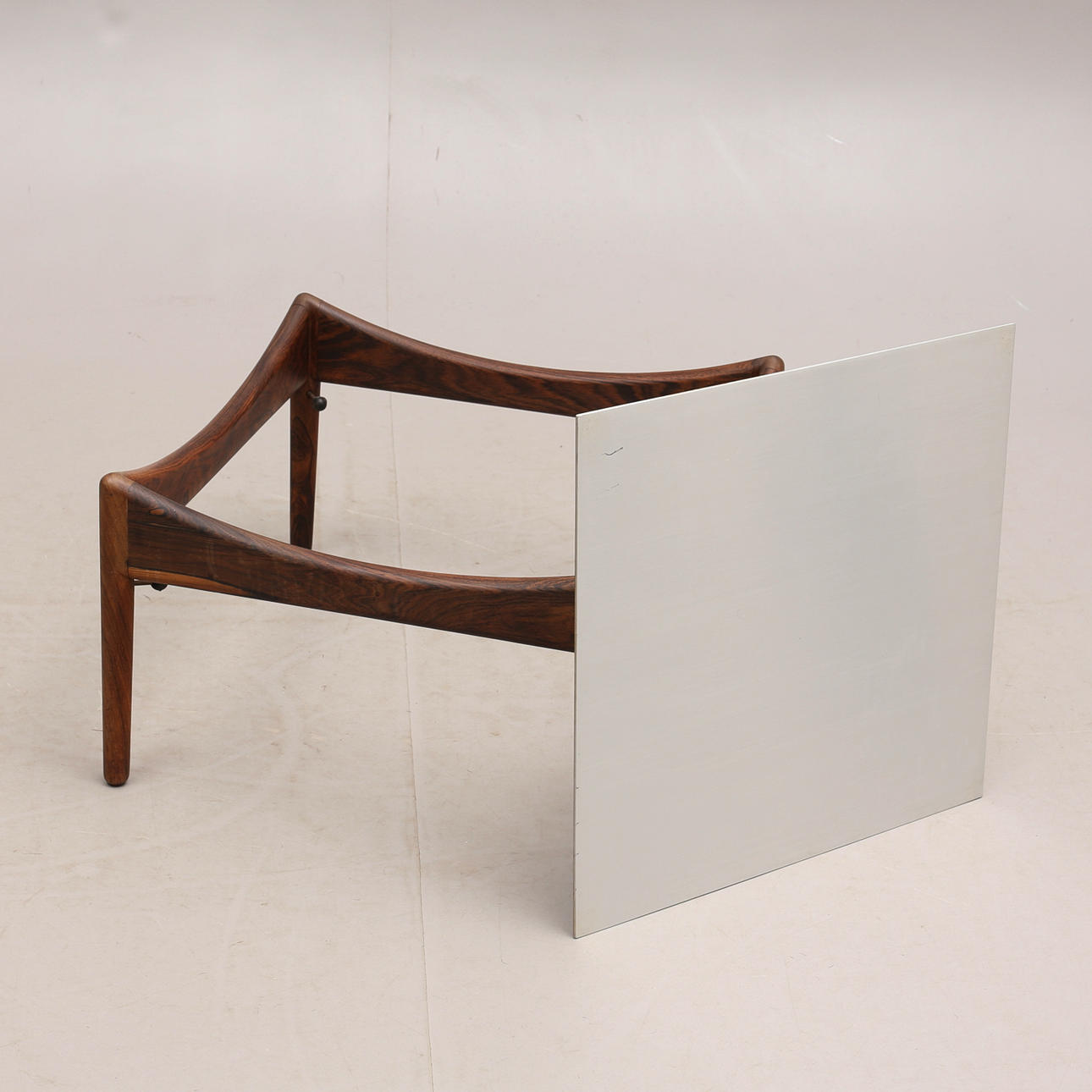 Ausführung Sören Willadsen, Vejen, Dänemark, um 1960/70er Jahre, Jacaranda-Rahmen, Aluminiumblech einseitig mit Palisander-Imitation.