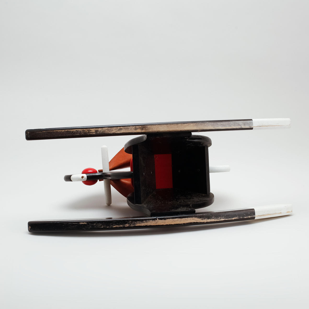 Lackiertes Holz mit Lederdetails. Länge 73 cm, Höhe ca. 38 cm.