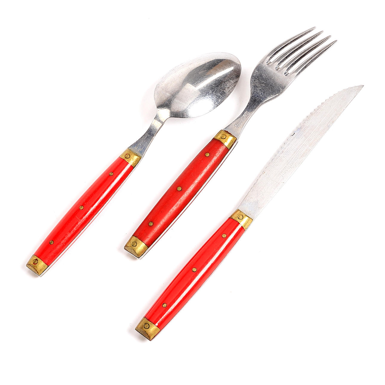 Bestehend aus: 9 Gabeln, 6 Messern, 6 Löffeln, Länge ca. 17-19 cm.