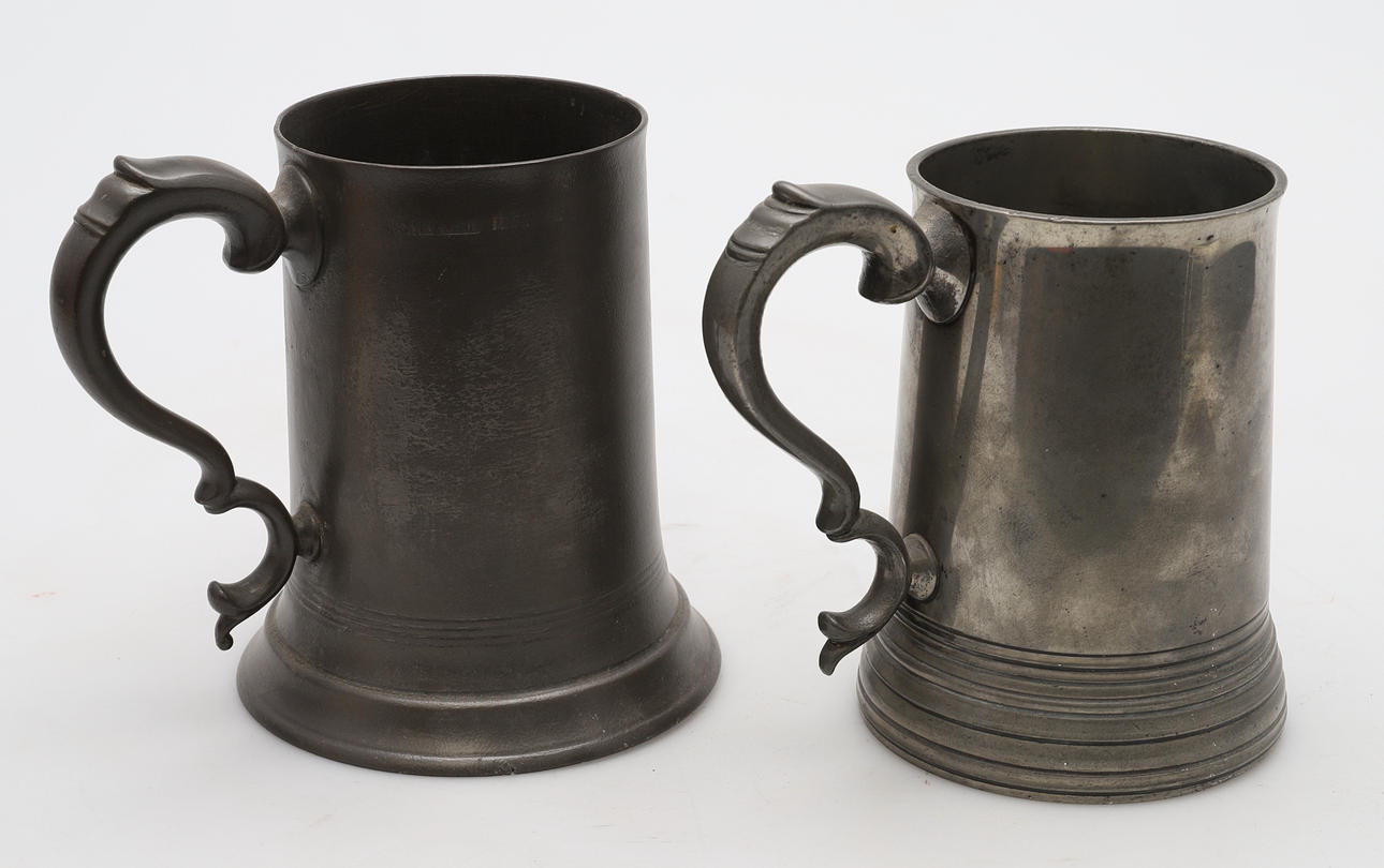 1705939. ZWEI VIERTELBECHER MIT ZINNGLASBODEN.