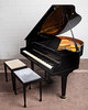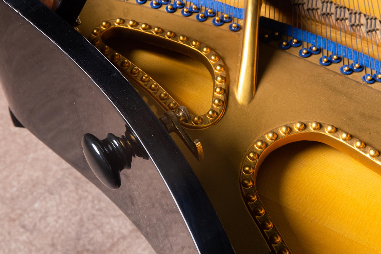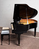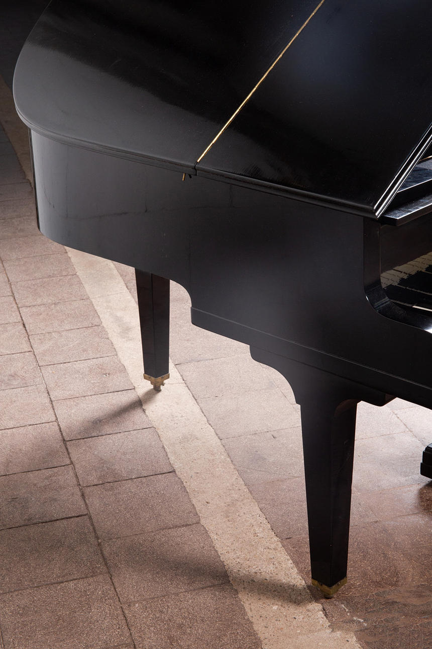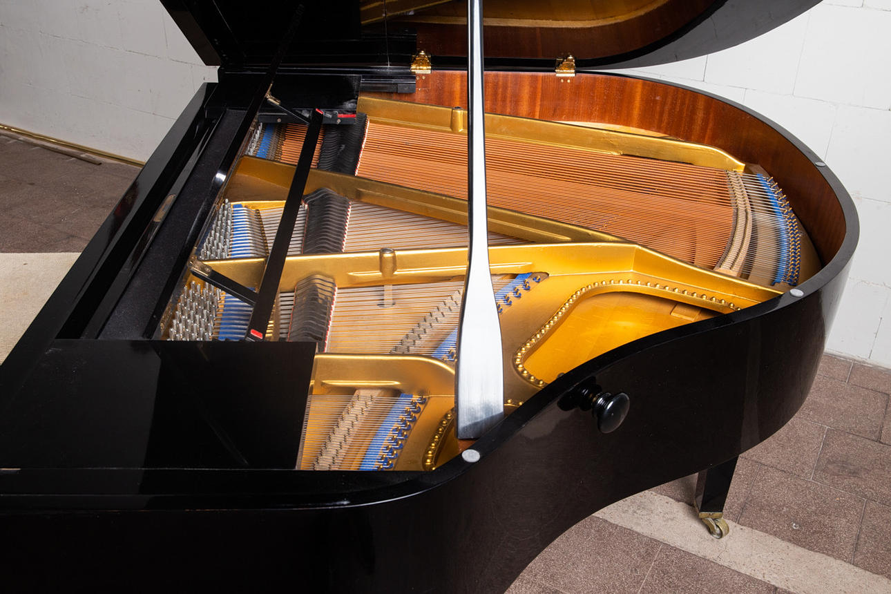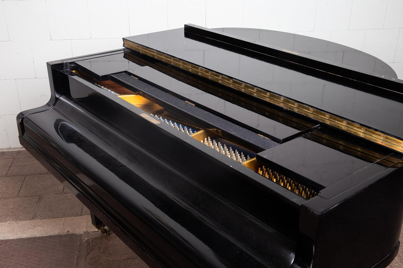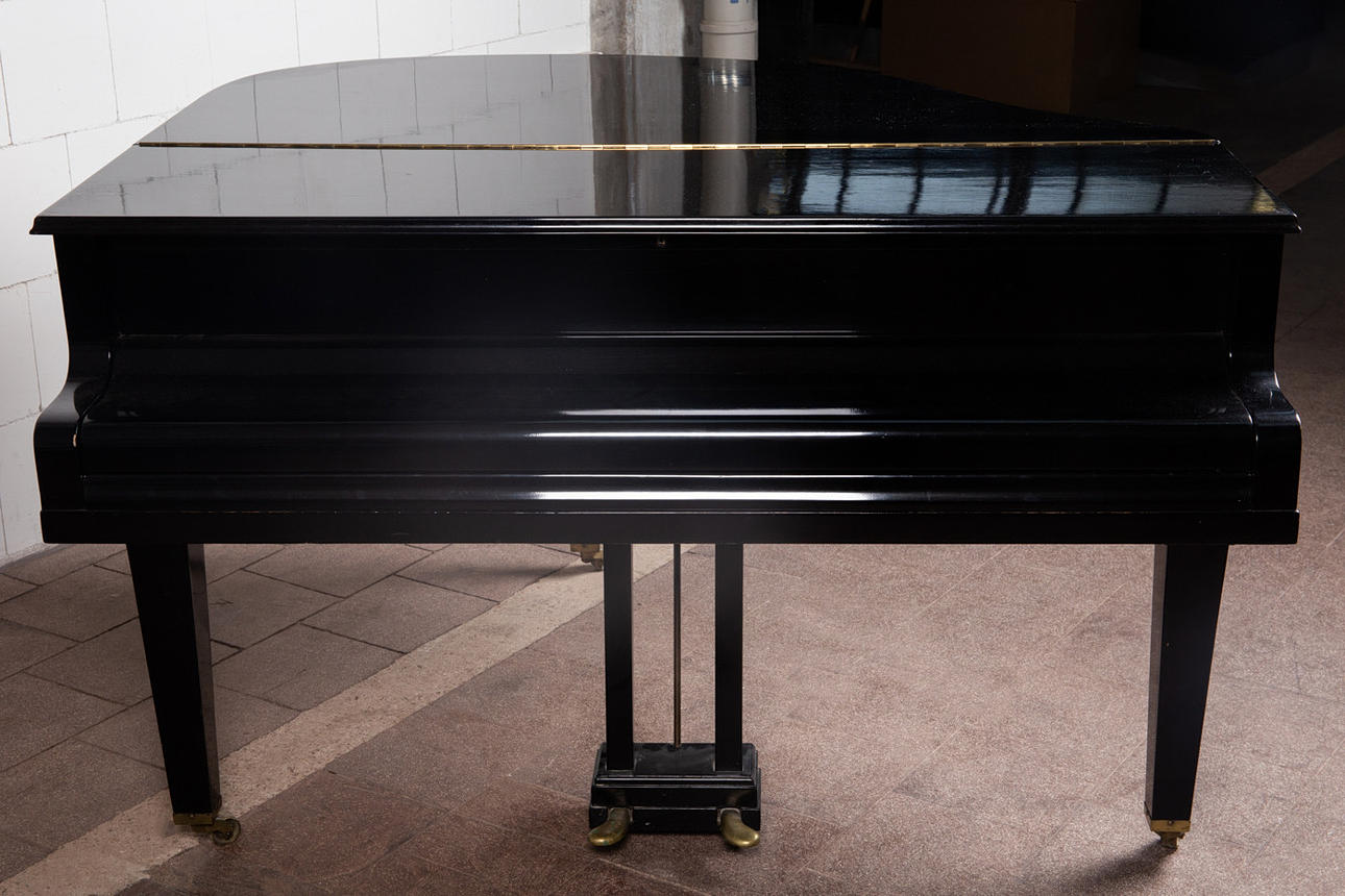 Eduard Seiler Liegnitz, Flügel / Klavier, Modell '130'. Flügel mit einem schwarz lackierten Holzkorpus und einer Tastatur aus Holz mit einem Belag aus gefärbtem Acrylglas, sowie mit zwei Pedalen ausgestattet, prämiert mit der Goldmedaille 'Tokio 1922', die Tastatur ist größtenteils nachgedunkelt, der Resonanzboden aus Kirschbaum zeigt keine sichtbaren Risse und wurde restauriert, der Stimmbock ist in einem guten Zustand, die Regulation der Mechanik müsste überarbeitet und der Flügel selbst wahlweise gestimmt werden, Höhe: 91-174cm, L.133cm, B.144,5cm, anbei zwei Hocker mit Velourbezug, je: H.50cm, L.51cm, B.36cm.