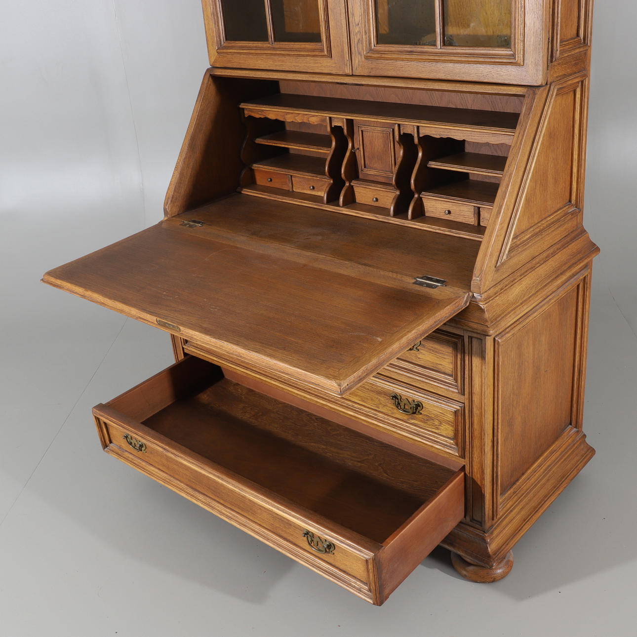 SEKRETÄR MIT DISPLAYPLATTE, Eiche, Schlossmöbel, 2. Hälfte 20. Jahrhundert.