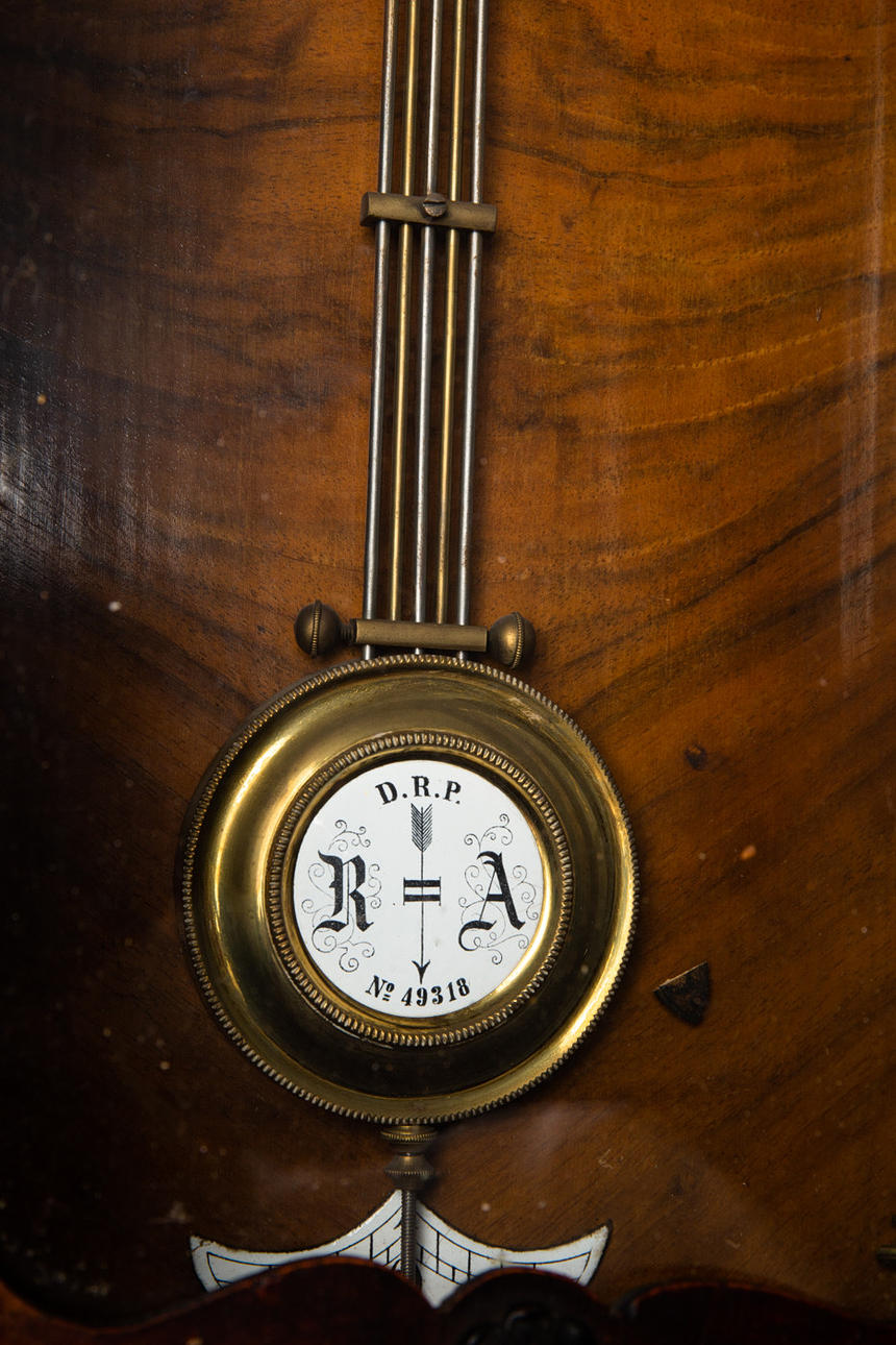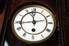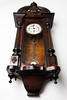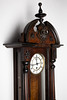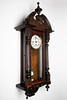 Regulator / Wanduhr, Holz, Metall. Regulator mit Kugelkrönung, Konstruktion aus Holz mit einem dreiseitig verglasten Korpus und kannelierten Säulen, weißes Pendel und Ziffernblatt mit römischen Ziffern, mit Minuten- und Stundenzeiger, H.93cm, B.37,5cm, T.17cm.