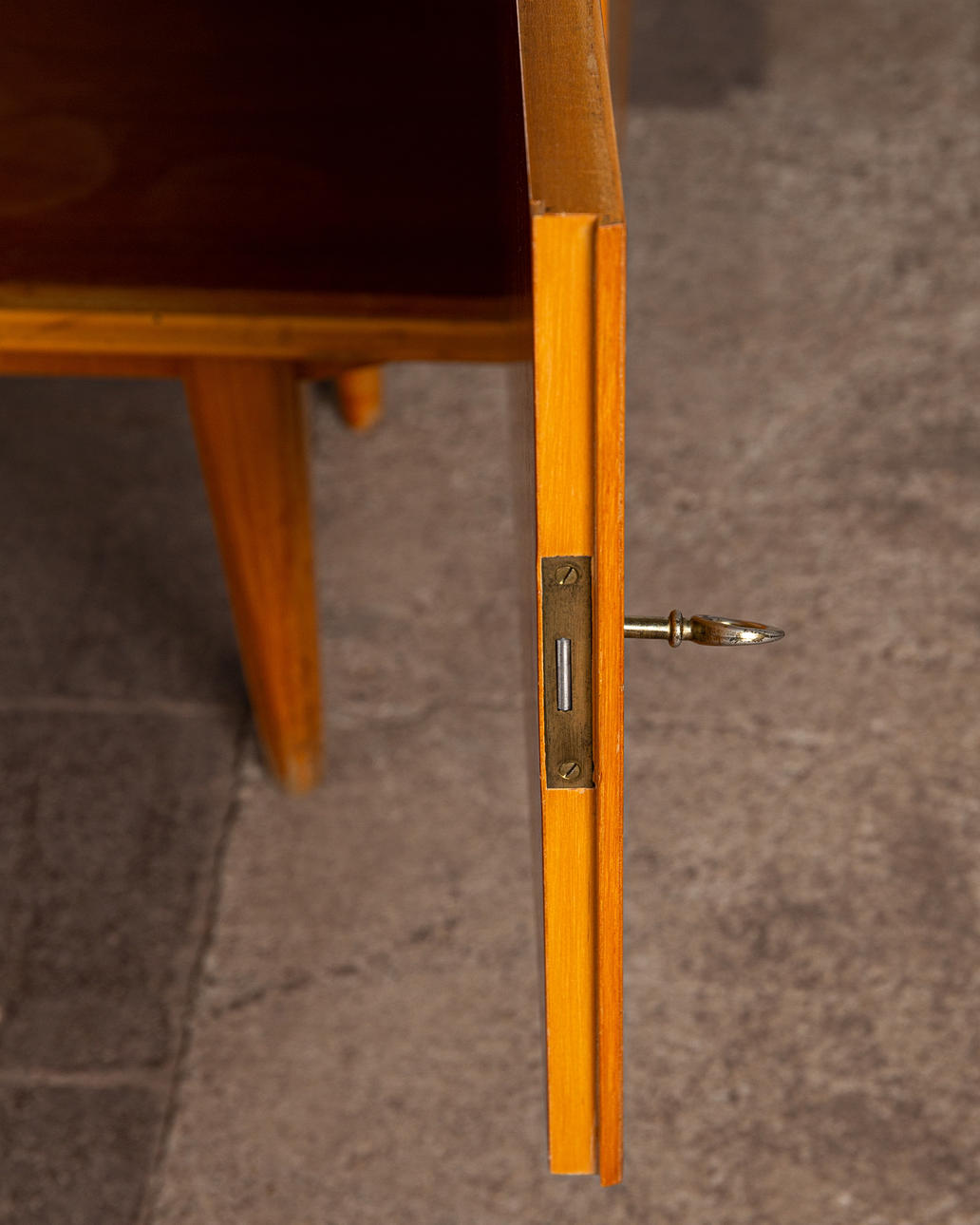 Altersgemäße Gebrauchs- und Reibespuren, partielle Kratzer und Bestoßungen im Holz.