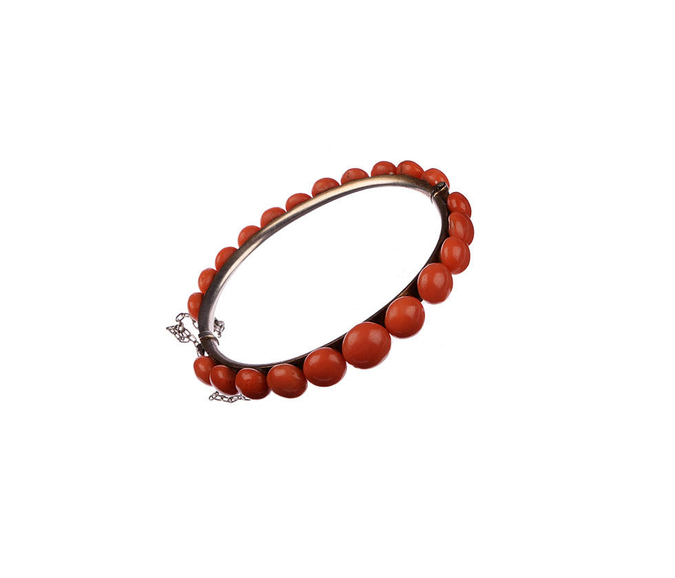 Ein Korallenbouton vom Armreif fehlt, normale altersbedingte Gebrauchsspuren.