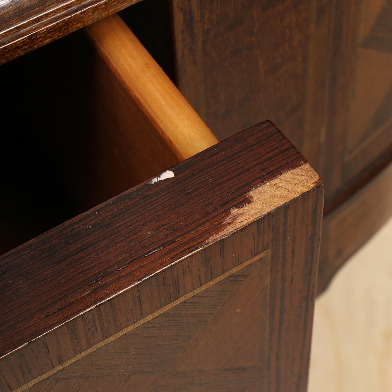 ein Seitenfenster mit Riss, Verschleiß.