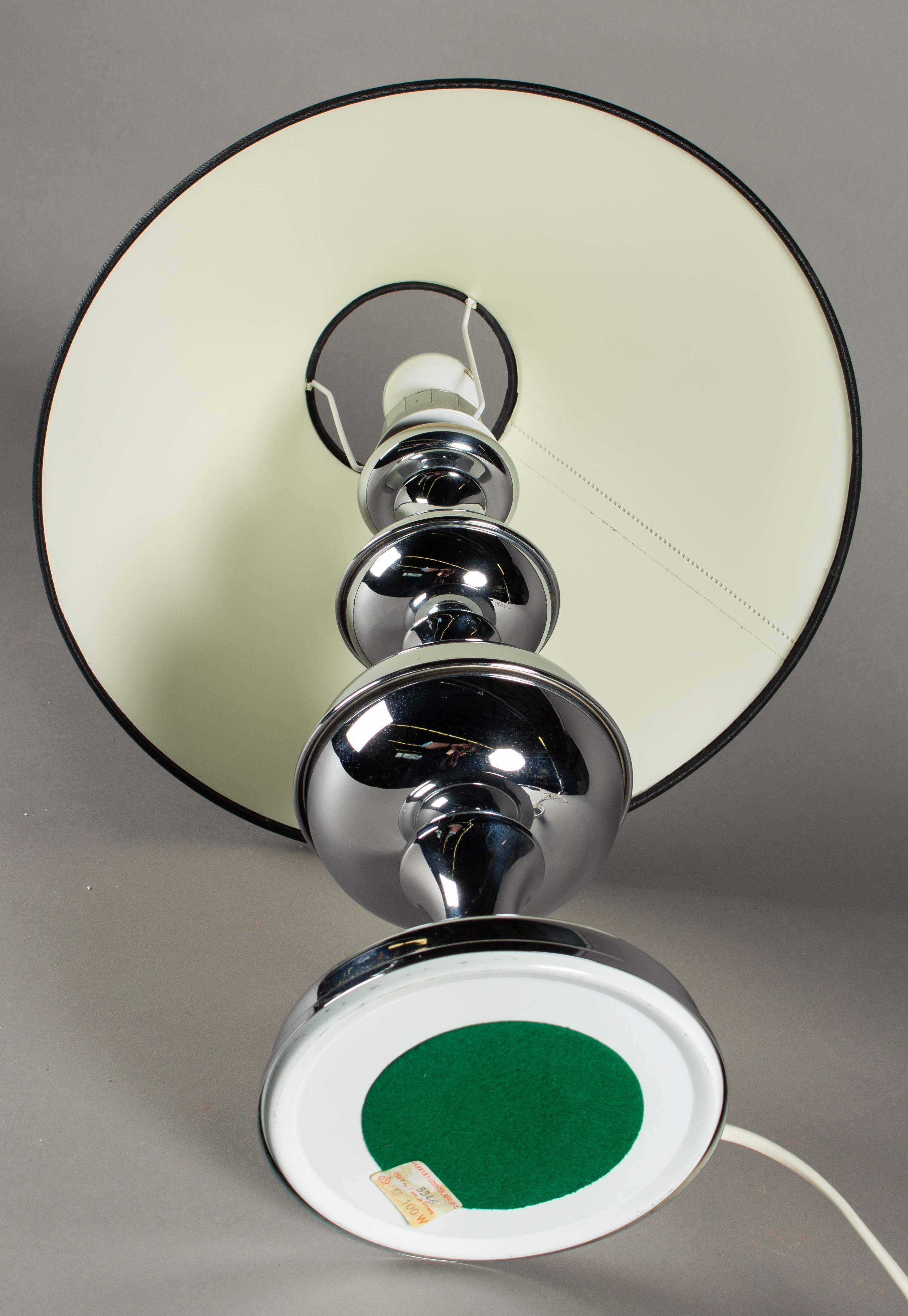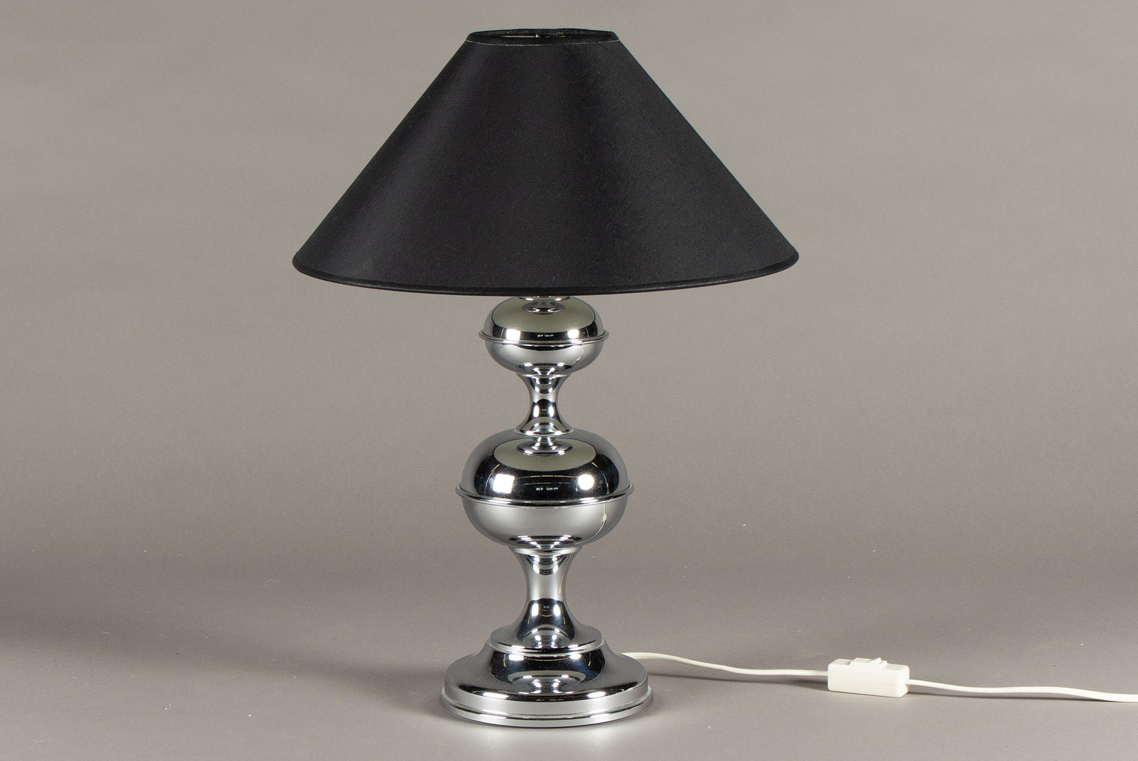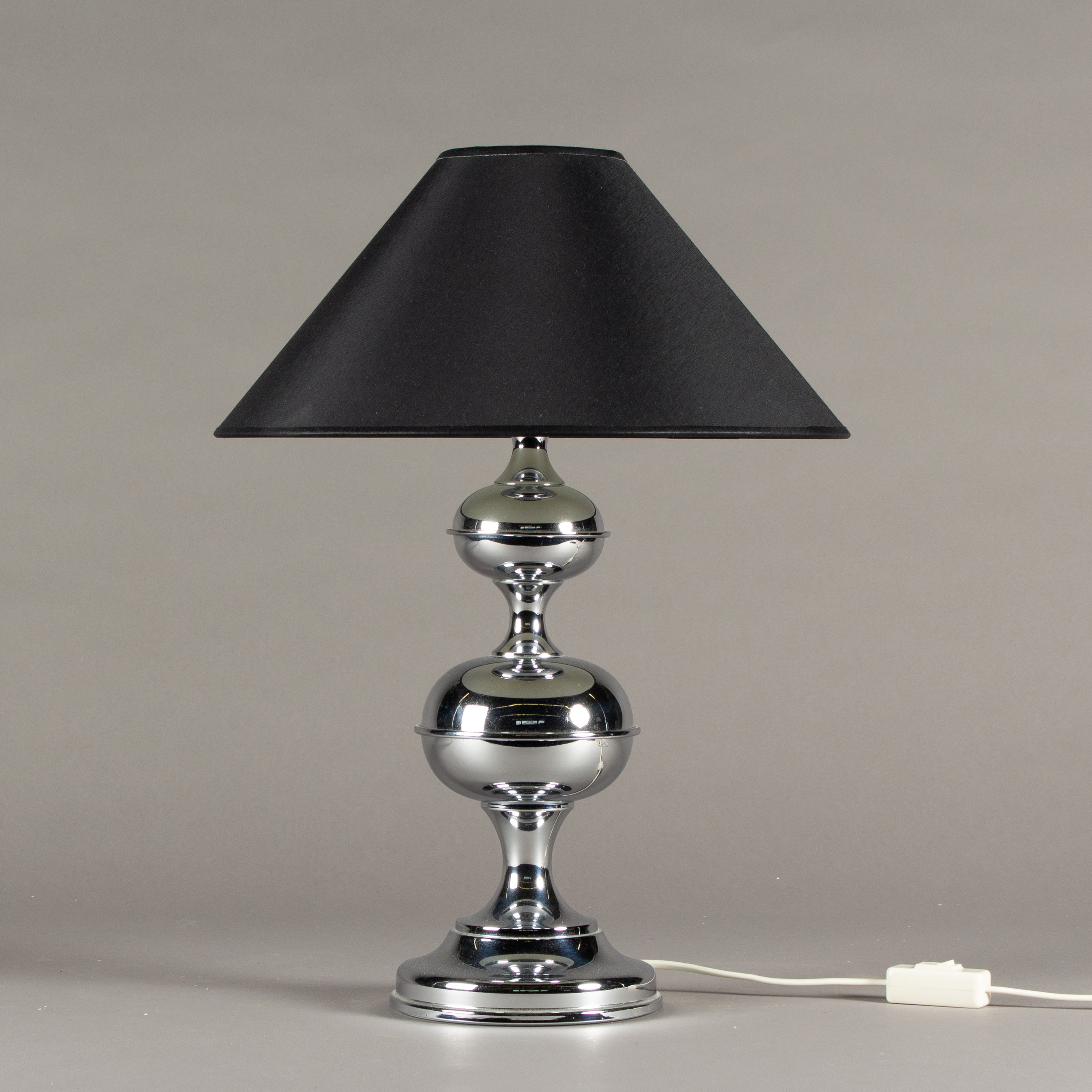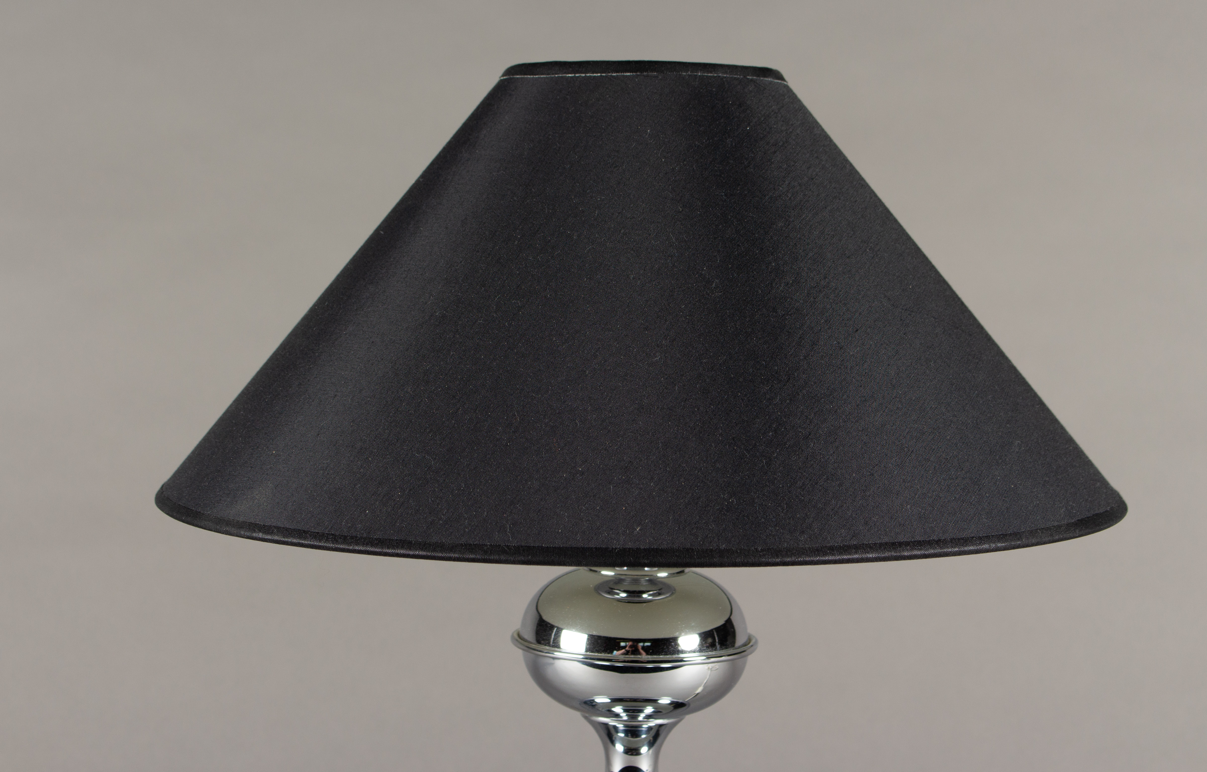 1716675. Tischlampe, Chrom, schwarzer Lampenschirm.