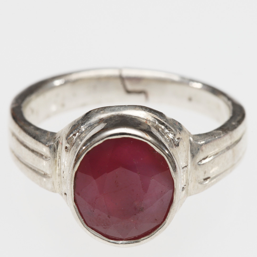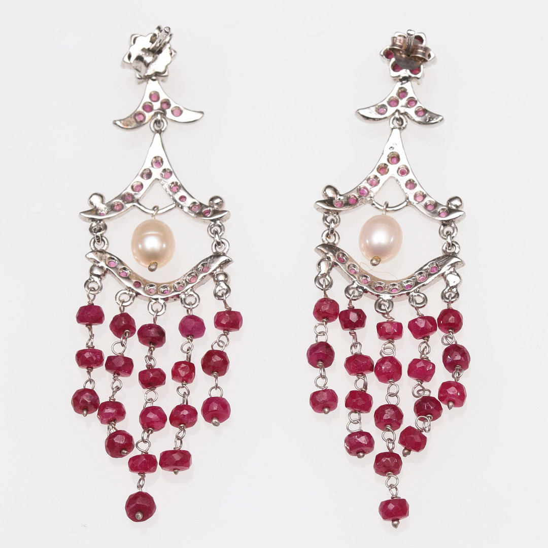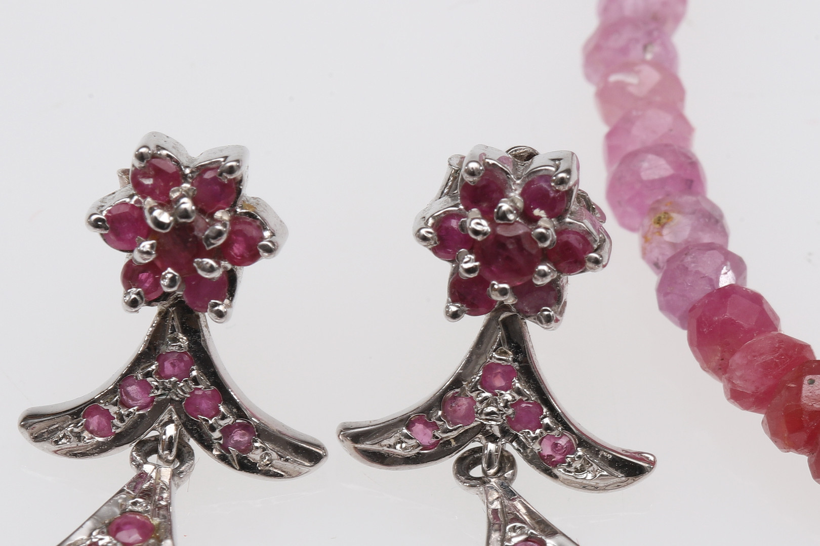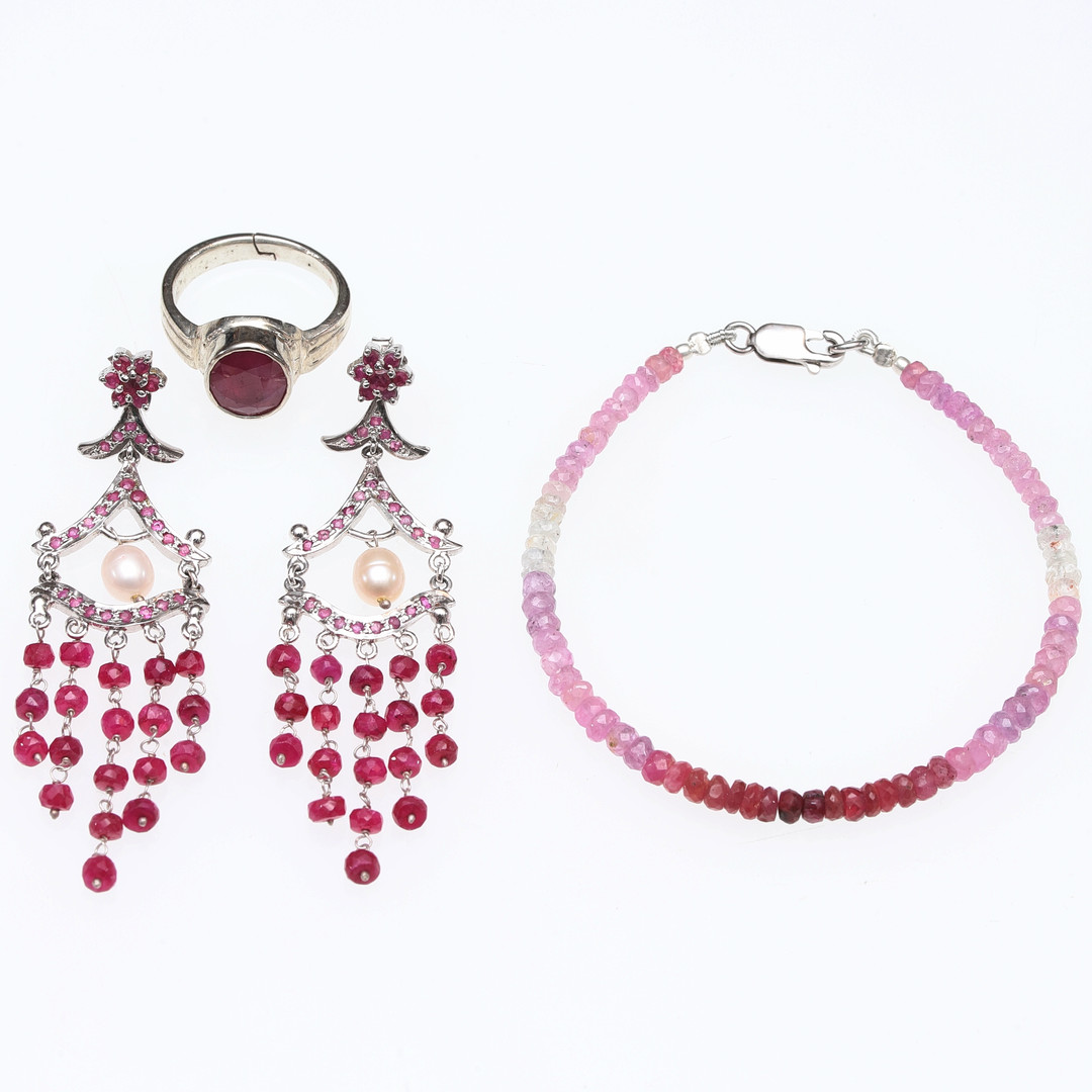 1720294. GARNITUREN, 3 Stück, Silber, Rubine und Spinelle.