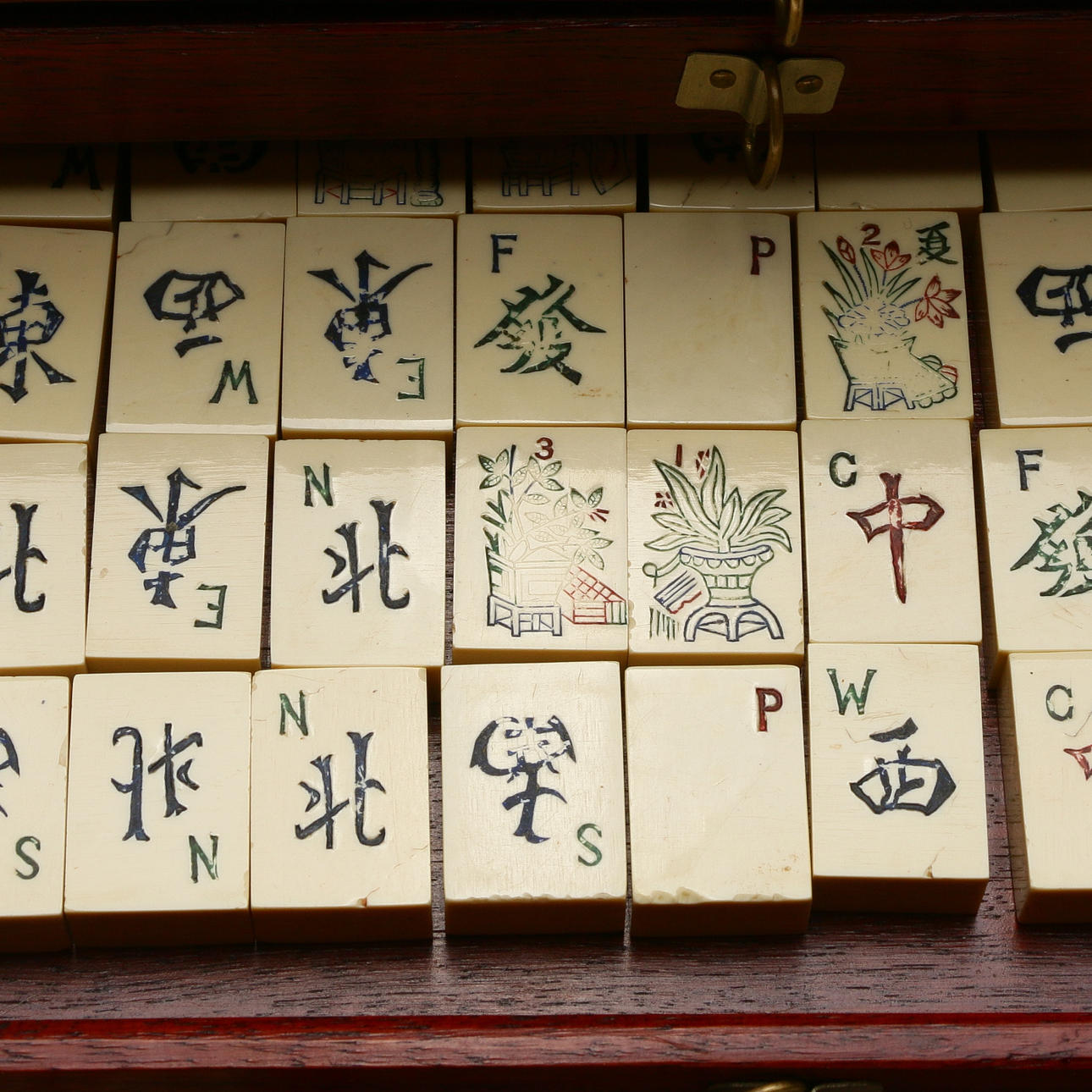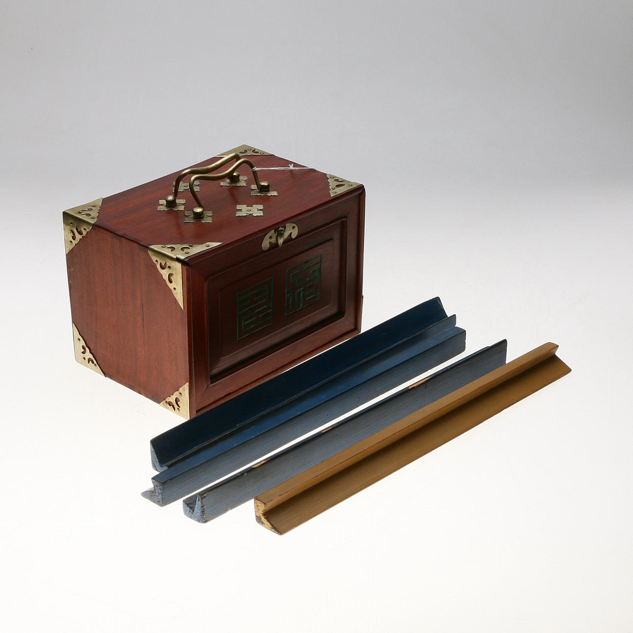 1724744. MAJONG-SPIEL, Holz und Messing, China, 1900.