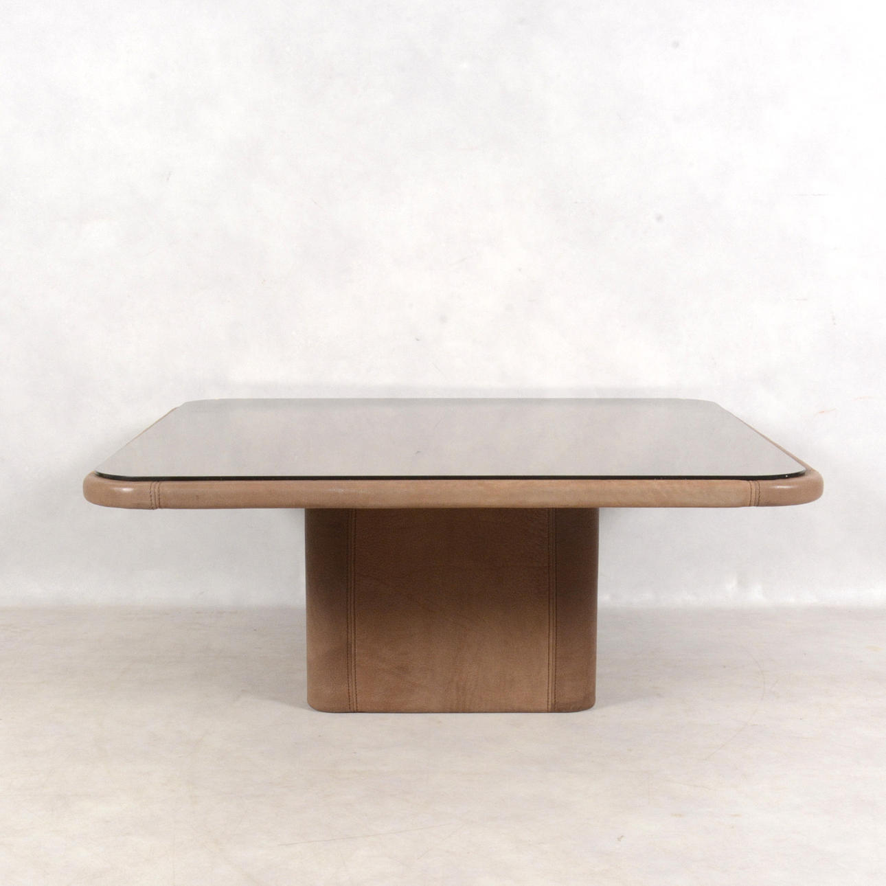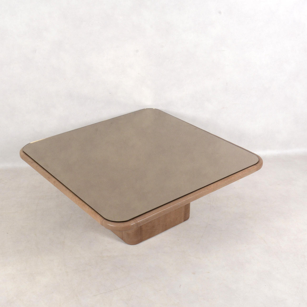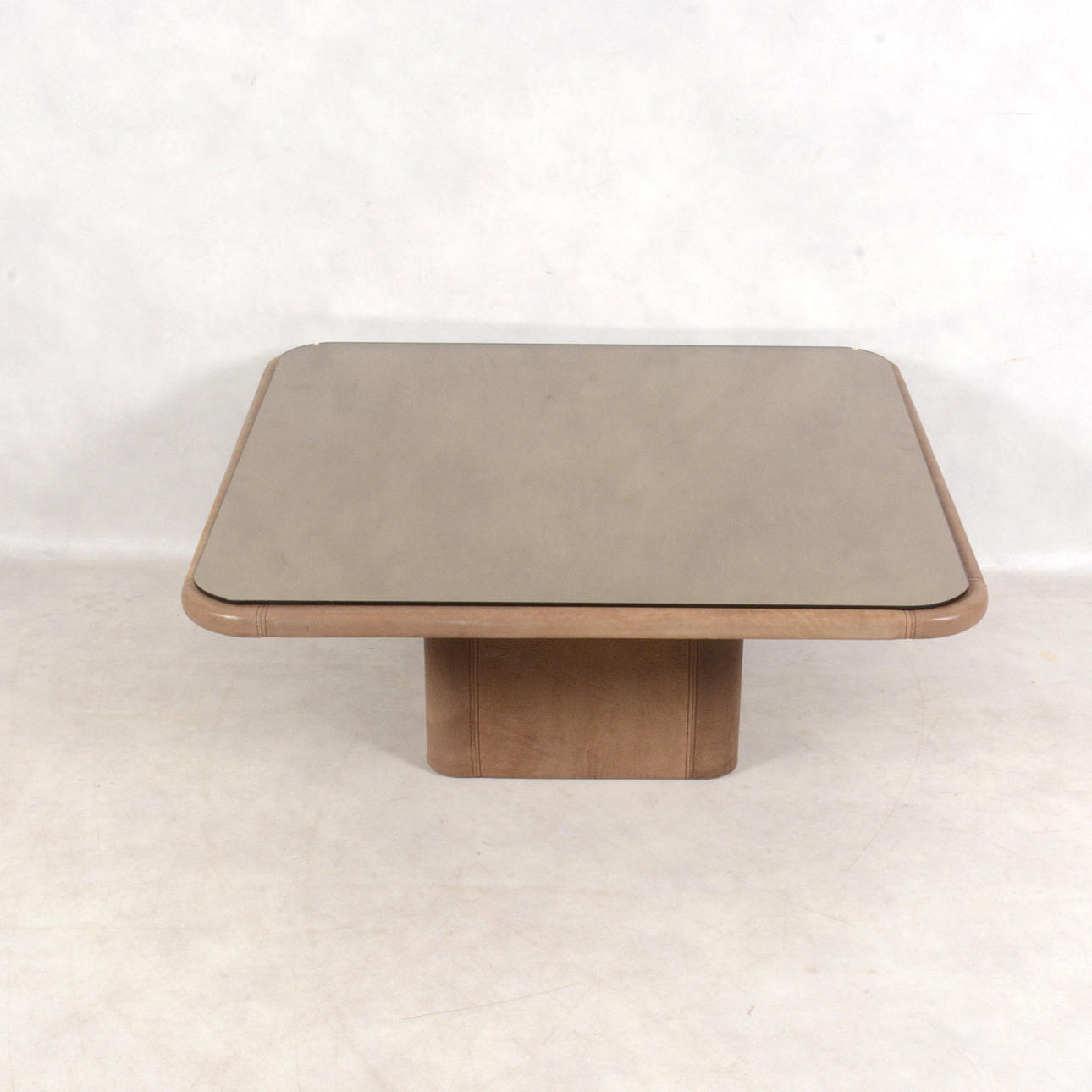 1725804. COUCHTISCH, Leder mit Glasplatte, 20. Jahrhundert.