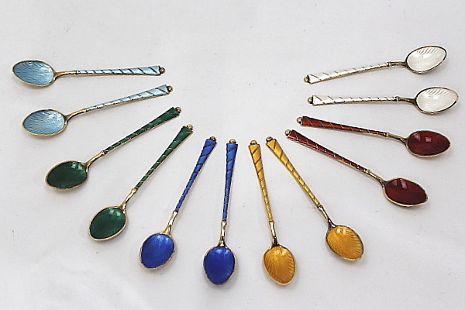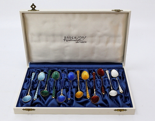 173306. KAFFEELÖFFEL 12 Stück, emailliert, Sterlingsilber.