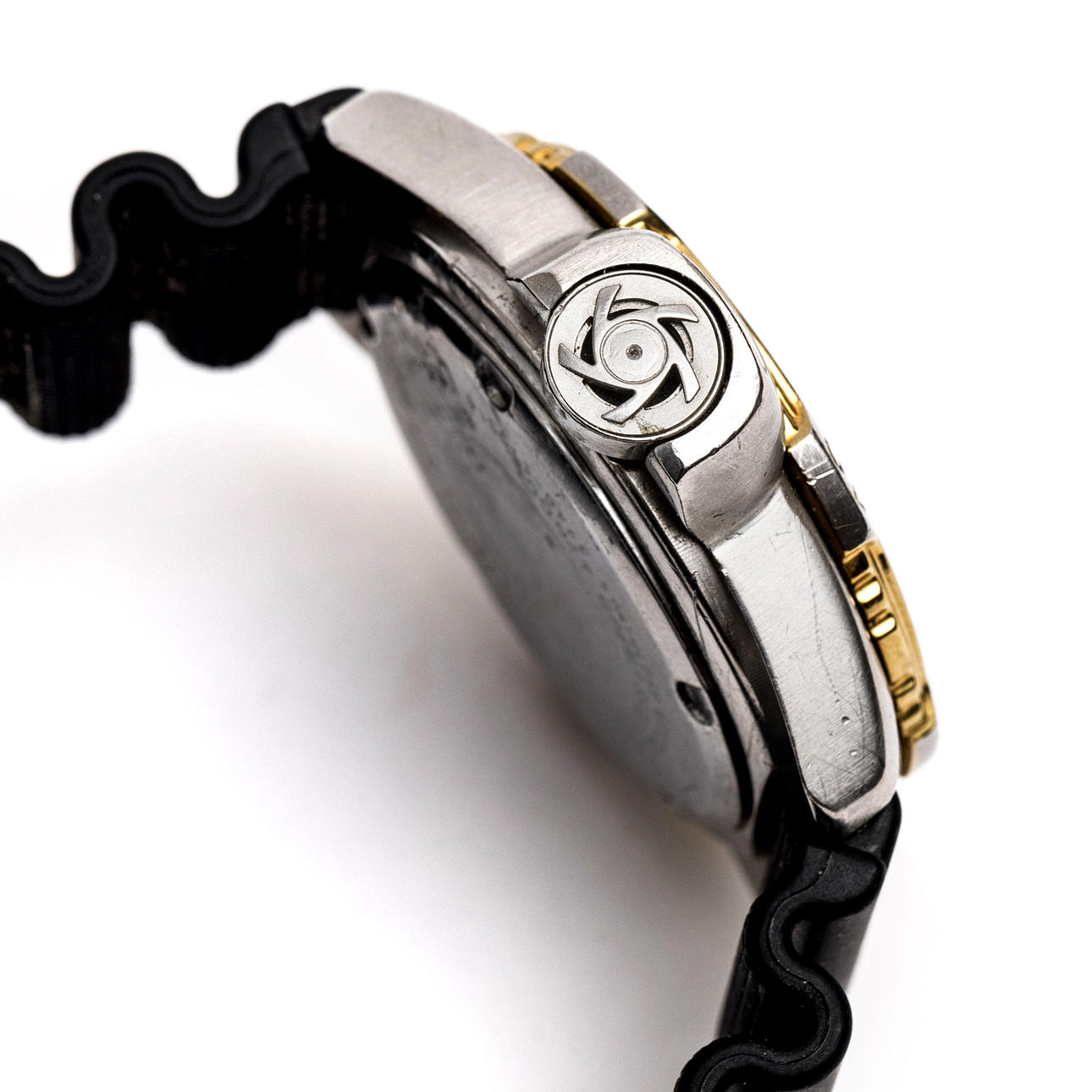 Bicolor, Quarz, Hartglas, Datum, Kautschukarmband, Kaliber 3740A, Referenz Nr. 3740-E70014, Gehäuse Nr. 561299, Gehäusedurchmesser 41 mm.