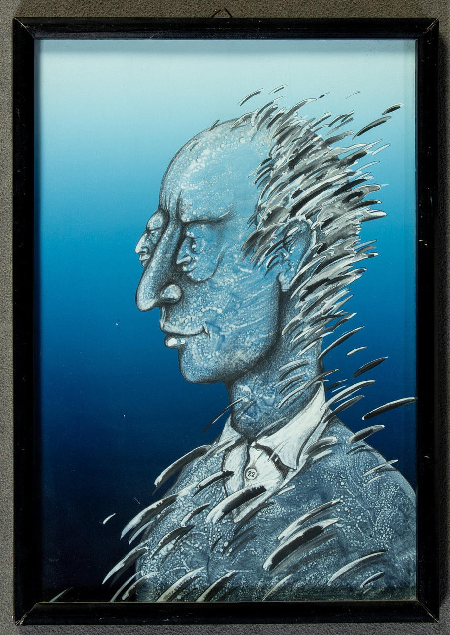 Julian Dziamski (geb. 1956), Portrait, Mischtechnik mit Bleistift und Gouache, 1983, schlecht leserlich im Unterrand signiert und datiert, mit schmaler Rahmenleiste ca. 38 x 27 cm.