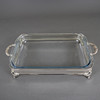 Metall versilbert, rechteckiges Gestell mit Durchbruchrand, 4 geschweifte Füße, 2 Henkel, Glaseinsatz (Marinex), HxLxB:ca.8,5x41x21,5cm.