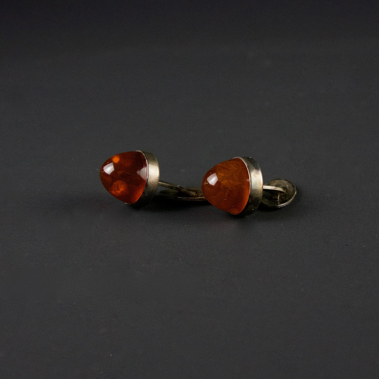 1745290. KRAWATTENNADEL und MANSCHETTENKNÖPFE, Silber und Bernstein.