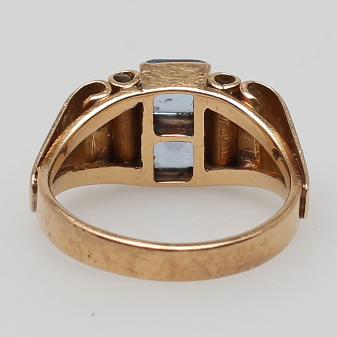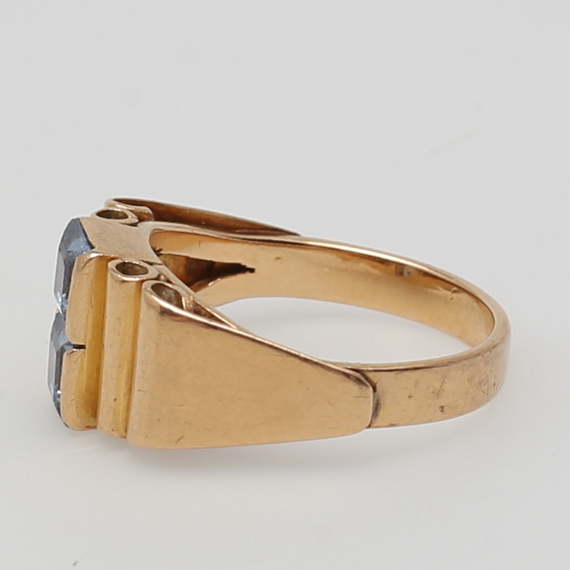 174730. RING aus 18 Karat Gelbgold mit 2 Aquamarinsteinen.