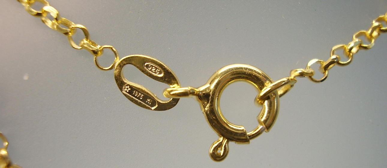 An ebenfalls vergoldeter Silberkette mit Federring-Verschluss in Silber 925 in 14 kt. Gelbgold vergoldet.