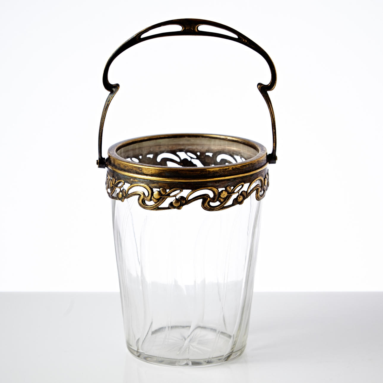 Würtembergische Metallwarenfabrik, Neusilber mit Glaseinsatz, mit Henkel, gemarkt, Gesamthöhe ca. 24 cm.