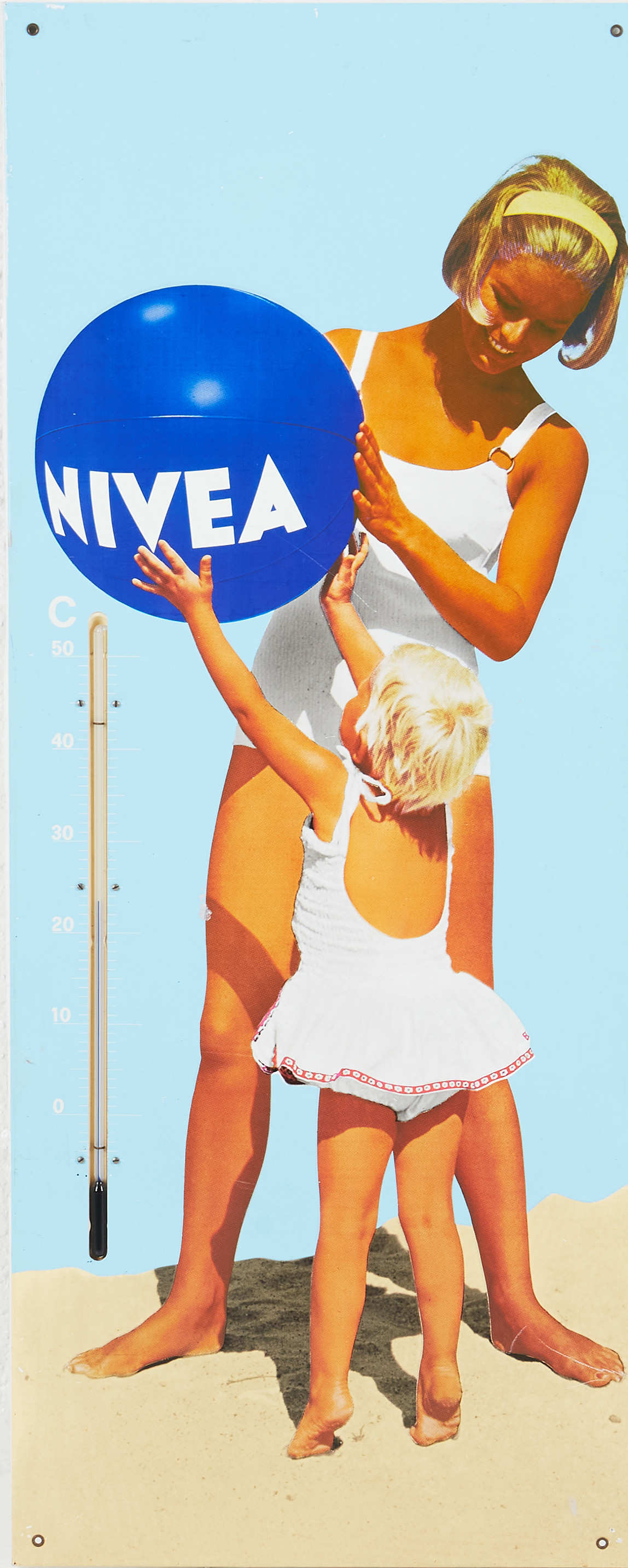 1756848. WERBESCHILD mit Thermometer, Nivea, 60er Jahre.