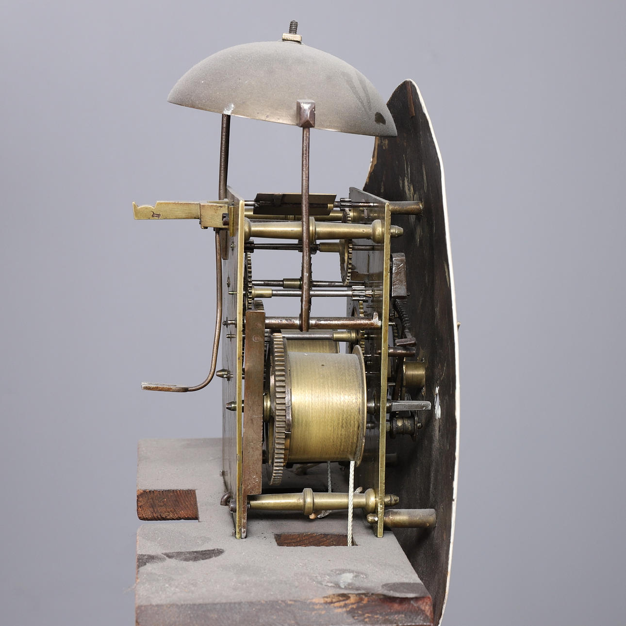 Tragespuren, Zifferblatt mit abblätternder Farbe, Glas fehlt, Schlüssel im Schloss abgebrochen, am Uhrengehäuse ein Scharnier defekt, nicht funktionsgeprüft.