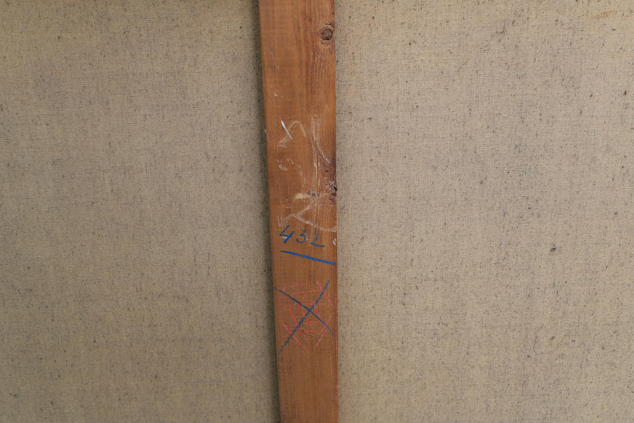 Leichte Kratzspuren am Einfassungsrand der Leinwand, keine größeren Mängel. Scheint in den letzten Jahren eine saubere Oberfläche gehabt zu haben. Kleine Retuschen unter UV sichtbar.