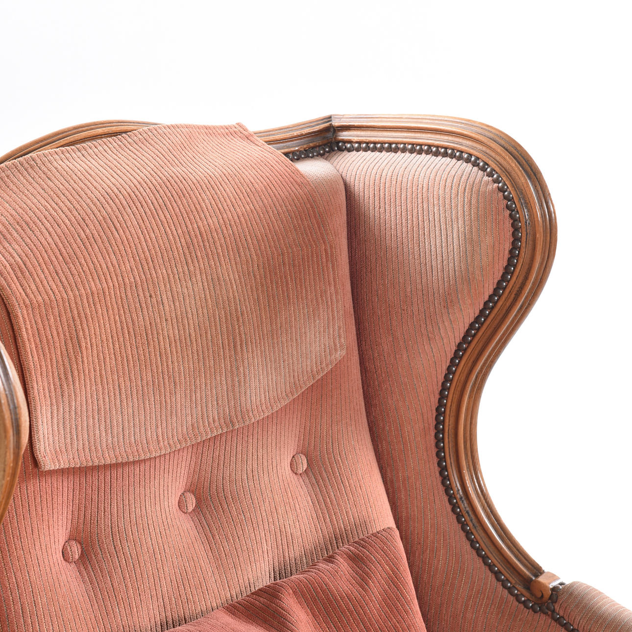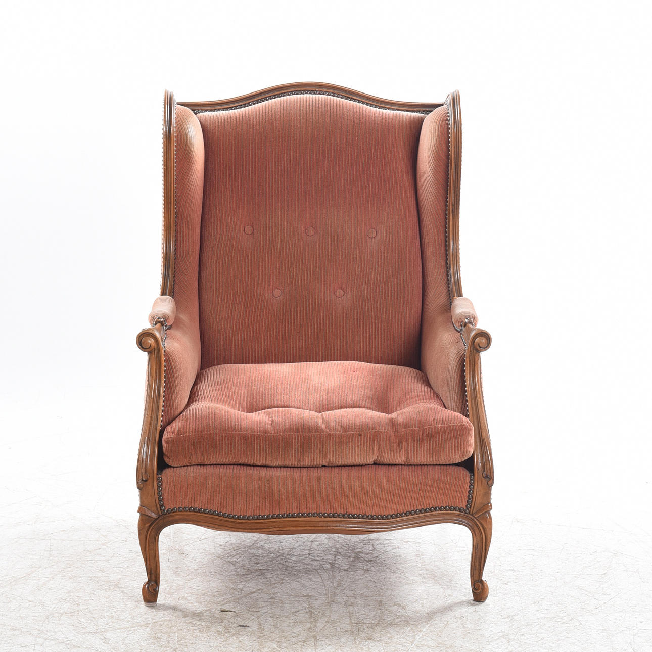 Geschnitzter Holzrahmen, Polsterung mit Nageldekor, Höhe ca. 97,71x70, Sitzhöhe 37 cm.