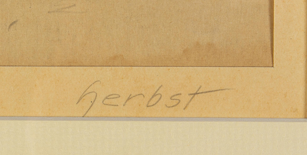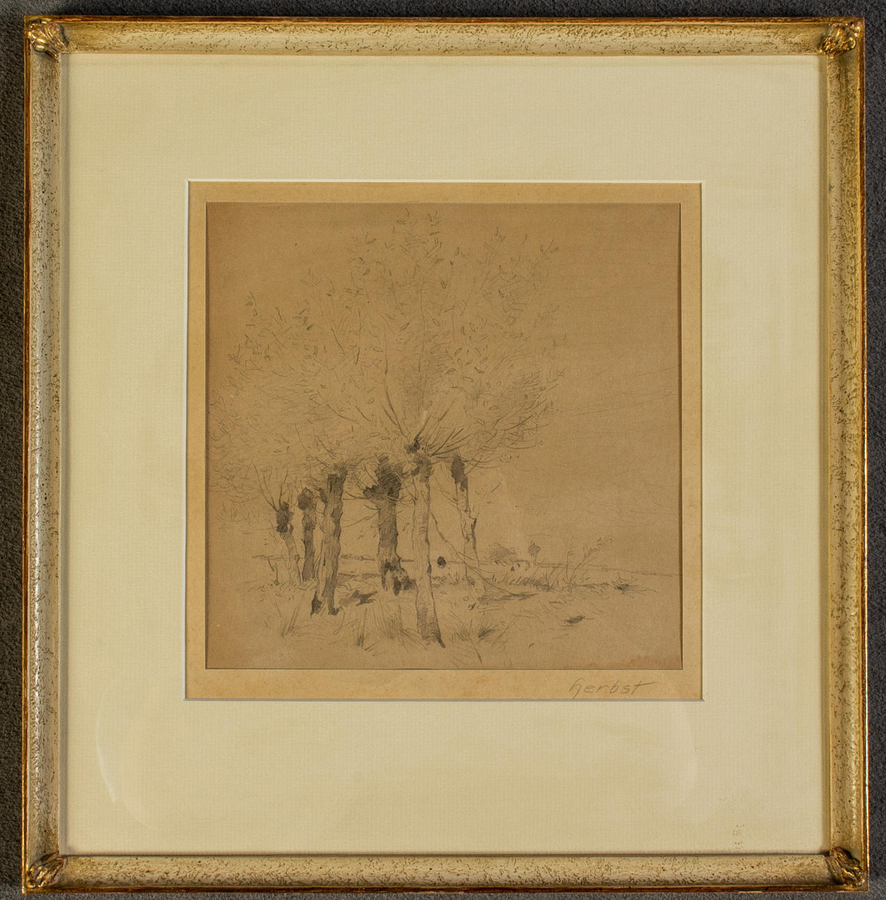Thomas Ludwig Herbst (1848-1915), Landschaft mit Bäumen, Bleistiftzeichnung, ca. 21 x 21 cm, hinter Passepartout und Glas gerahmt, mit Rahmen ca. 39 x 37 cm.