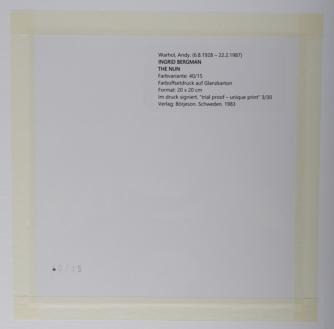1771000. ANDY WARHOL. NACH. "Ingrid Bergmann. Die Nonne".
