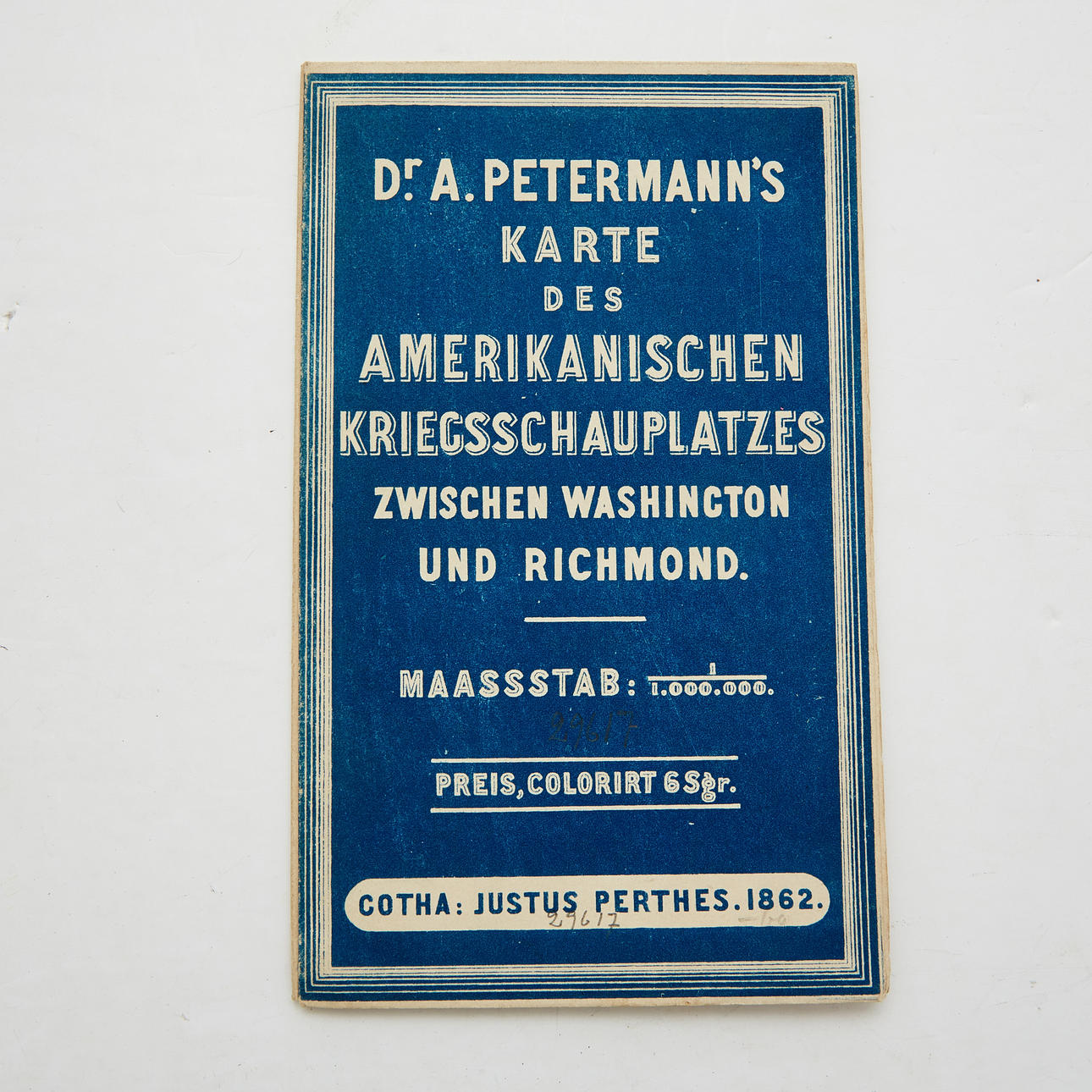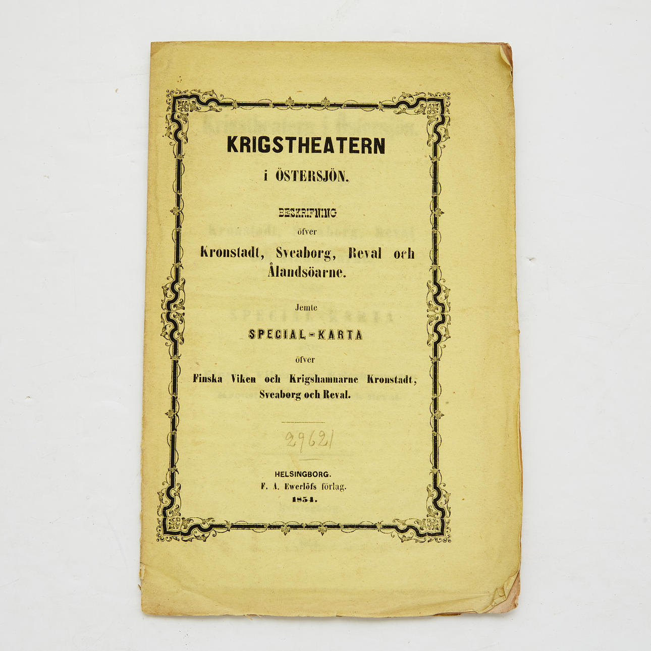 Ein Menge Kriegskarten, meist 19. Jahrhundert (ein paar Anfang des 20. Jahrhunderts, darunter Russisch-Japanischer Krieg). Petermann. Karte des amerikanischen Kriegsschauplatzes zwischen Washington und Richmond. Gotha, 1862. Ca. 385 x 450 mm. Gefaltete farblithographierte Karte - Kriegsschauplatz in der Ostsee. Beschreibung von Kronstadt, Sveaborg, Reval und den Ålandinseln. Jemte Spezialkarte des Finnischen Meerbusens und der Kriegshäfen Kronstadt, Sveaborg und Reval. Helsingborg, 1854. (8) S. Text + lithographierte Karte, ca. 405 x 500 mm. Geheftet in etwas abgenutztem bedrucktem Umschlag. Die Karte etwas fleckig. - DAHLMANN. Karte des dänisch-deutschen Kriegsgeschehens. Dritte Auflage, ergänzt mit 2 Spezialkarten der Gegend um Dyböl und Sönderberg und einer Karte der Dyböler Höhen in großem Maßstab. Stockholm, (1864). 2 lithographierte Kartenblätter, ca. 680 x 500 und ca. 145 x 200 mm. Mit gedrucktem grünem Titelschild. - IVERUS. Karte von Ägypten und dem Kriegsschauplatz in Suda. Linköping, 1885. Etwa 520 x 410 mm. Gefaltete farbig lithographierte Karte.
