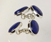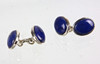 Die Manschettenknöpfe sind in Silber 925 gearbeitet und auch so gestempelt. Sie sind mit ovalen, fein polierten, Lapislazuli-Cabochons in glatter Zargenfassung, beide Seiten sind gleich ausgeführt, sie können somit beidseitig getragen werden, Größe 14,5 x 11,1 mm, Lapislazuli Cabochons ca. 13 x 9 mm, Gewicht 8,3 Gramm.