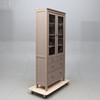 2 verglaste Türen mit darunter liegenden Regalen. 4 Schubladen. Länge etwa 90. Breite etwa 37. Höhe ca. 197 cm.