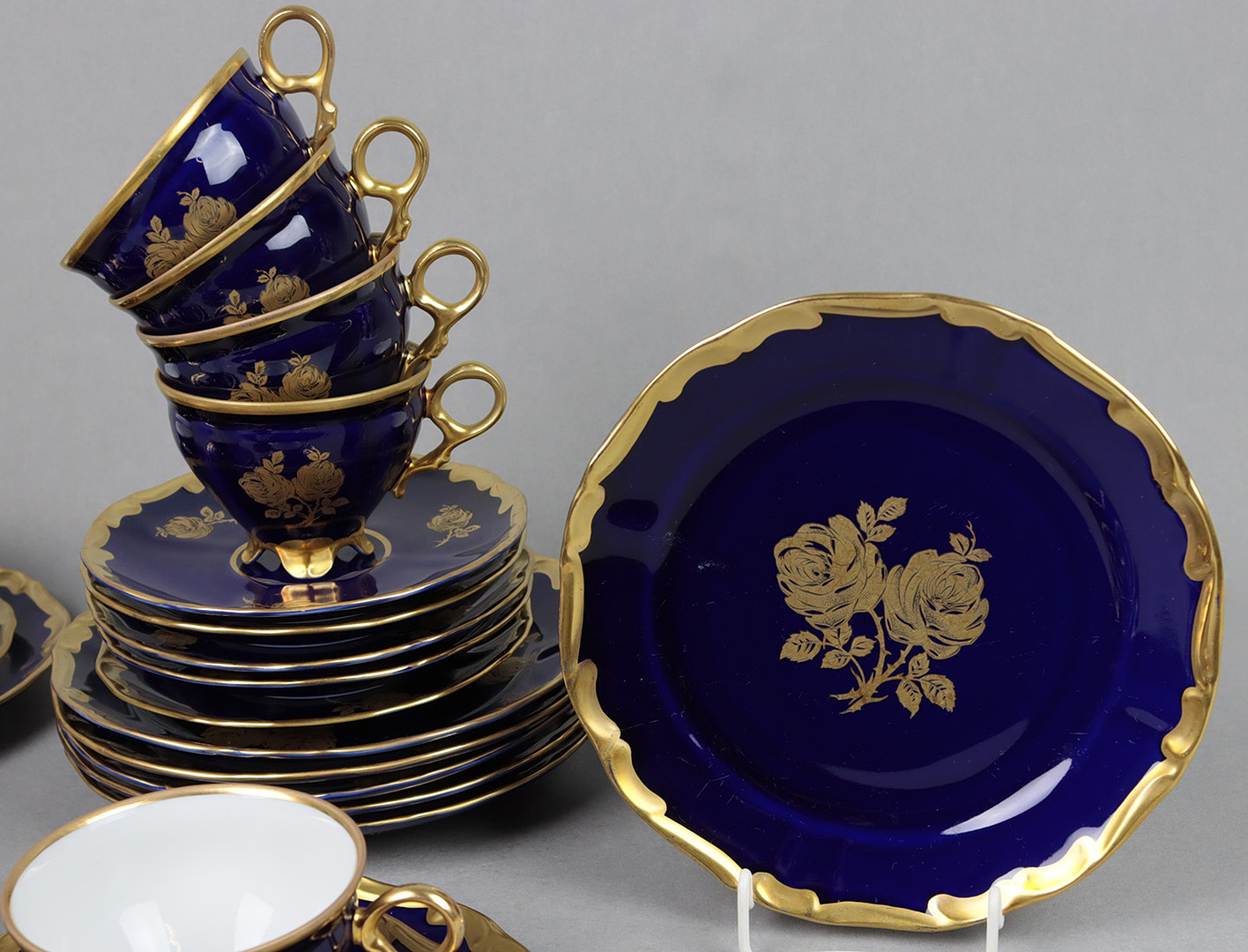 1780780. KOBALT KAFFEEGEDECKE *Goldrose* Modell Riga.