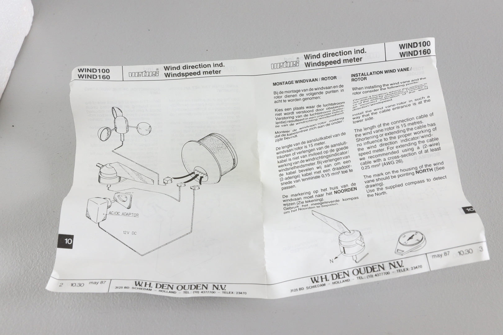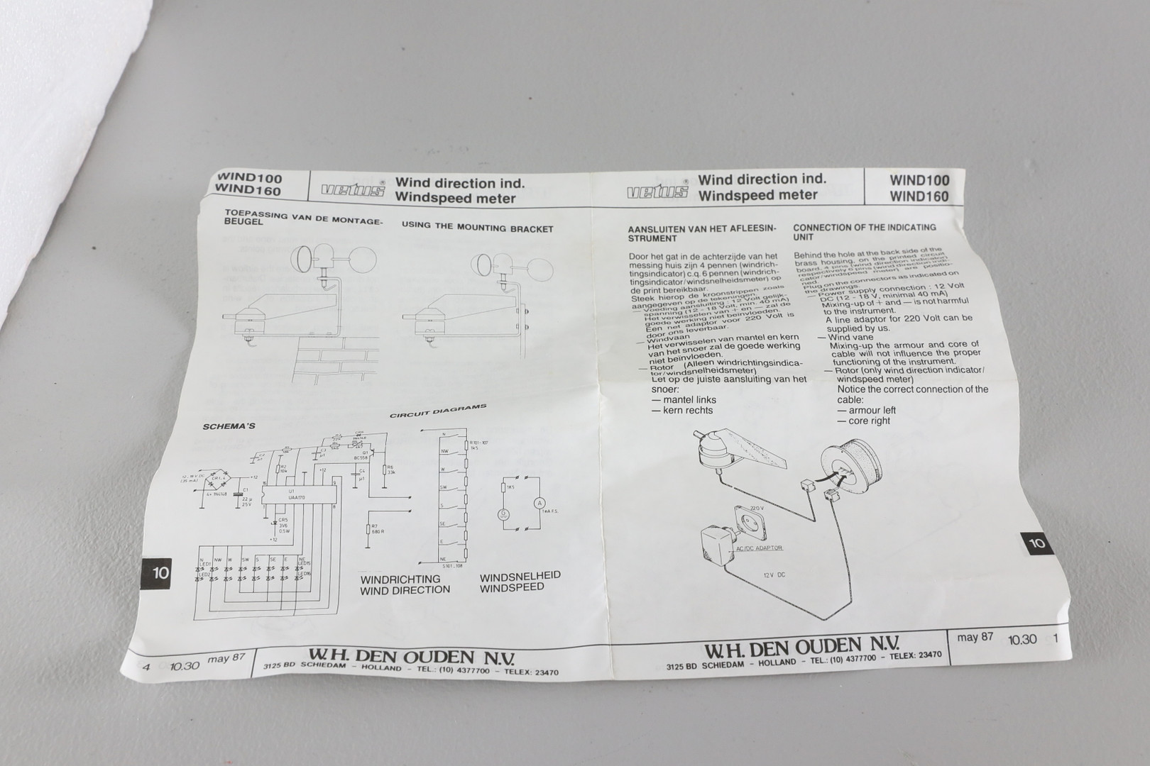 1783057. WINDMESSGERÄT, Vetus, Holland.