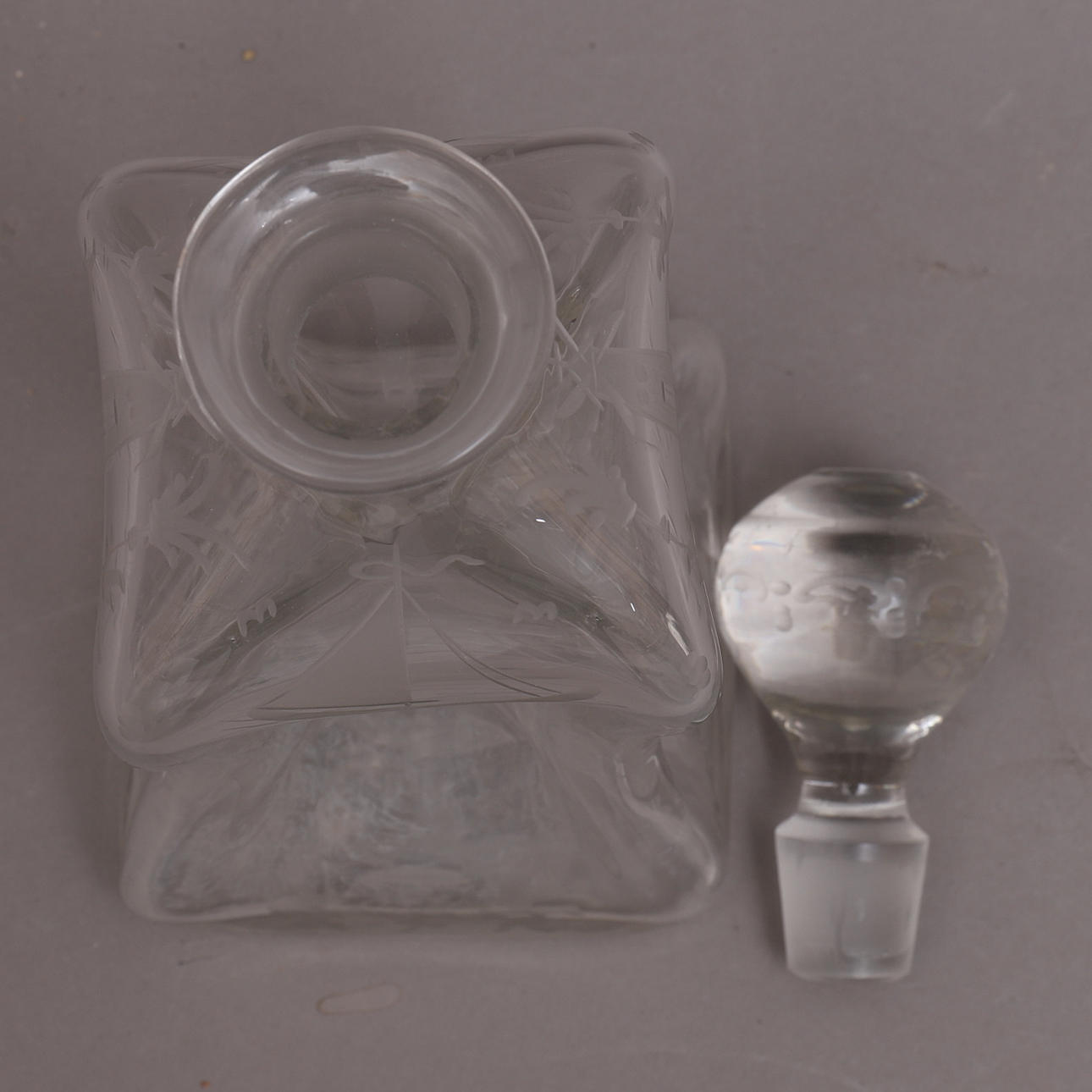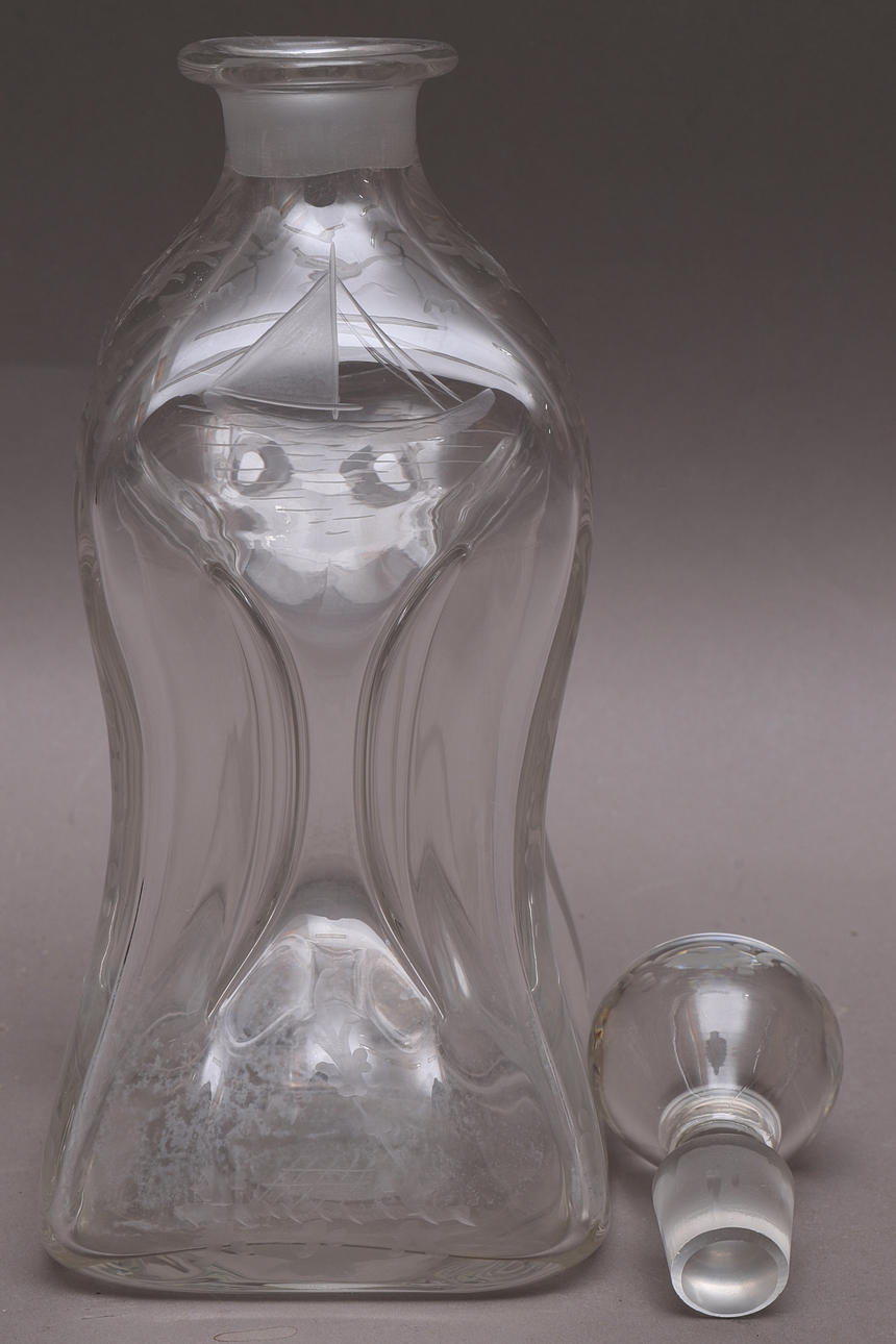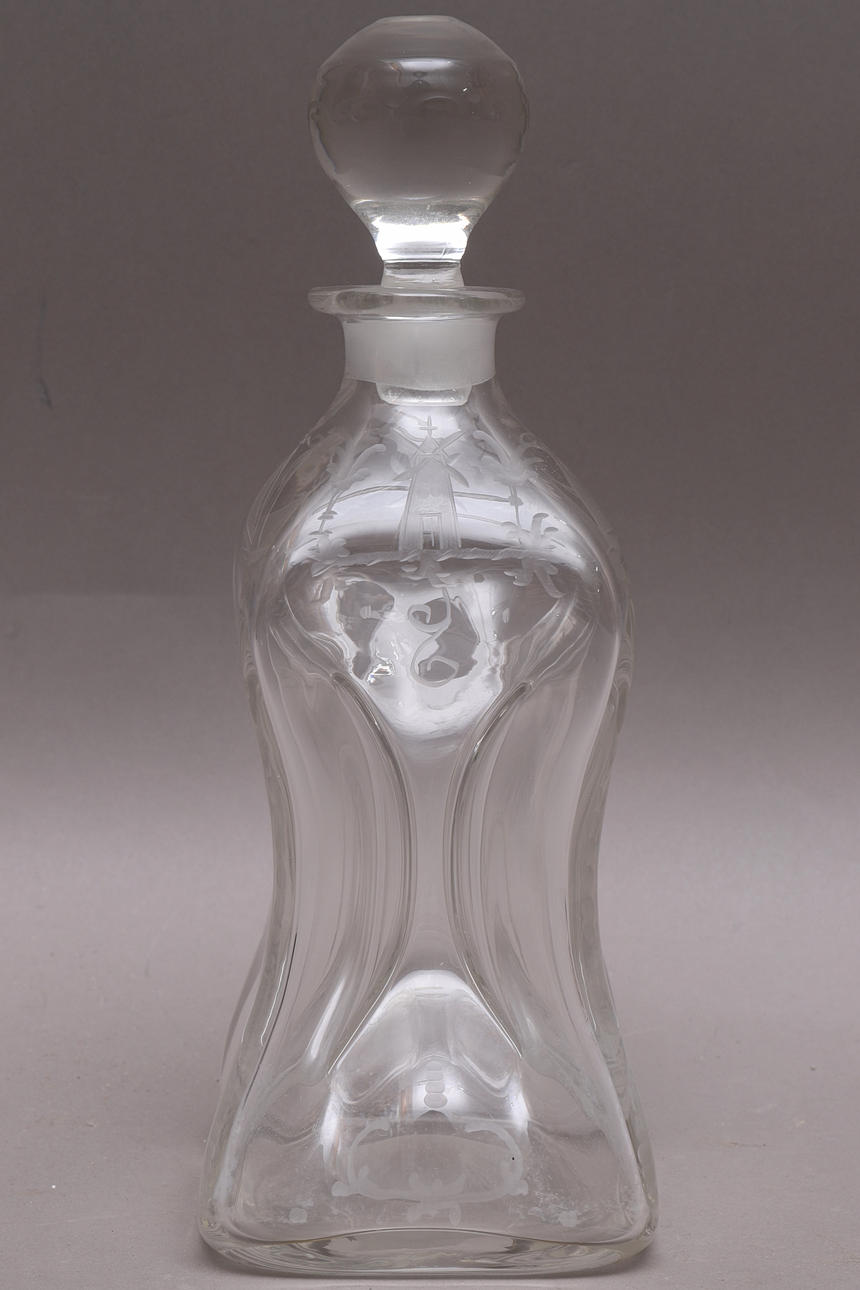 1783260. UHRENFLASCHE mit Stöpsel, Glas, gravierte Dekoration.