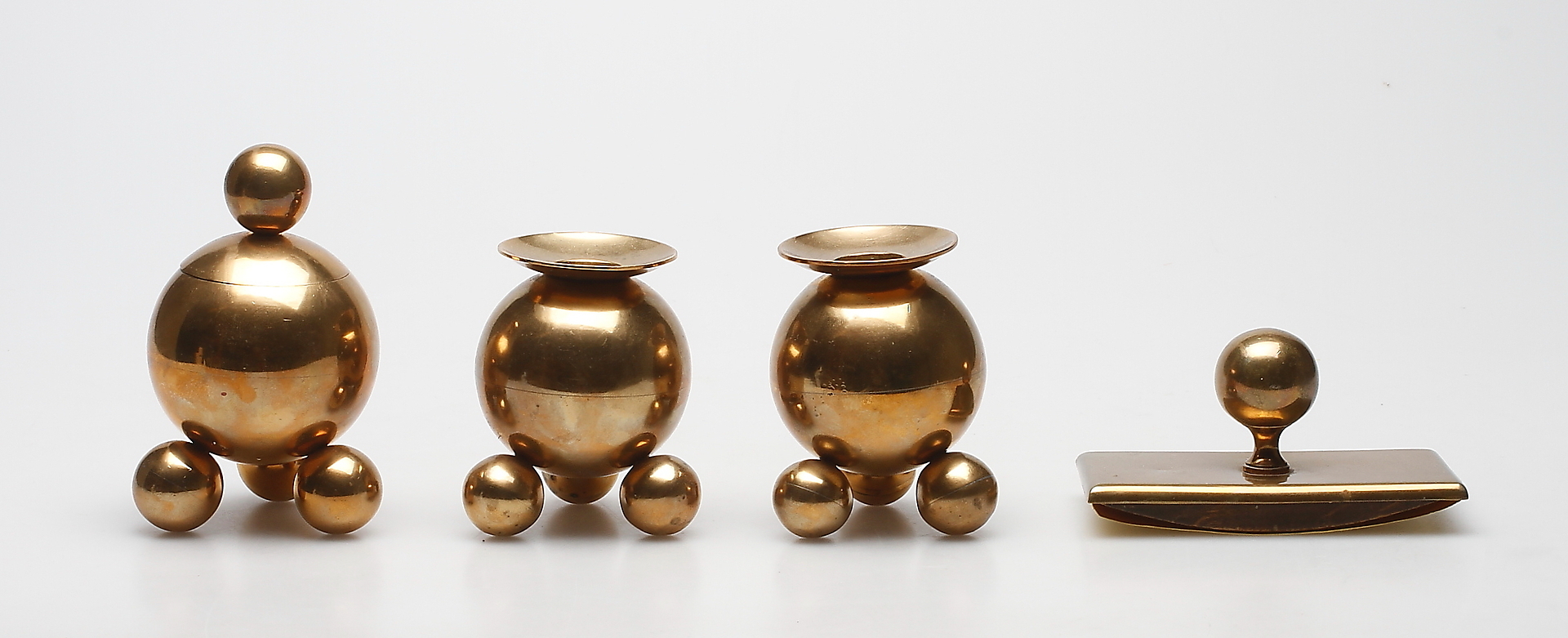 178518. SCHREIBTISCHSATZ, 4-teilig, Messing, Gusum.