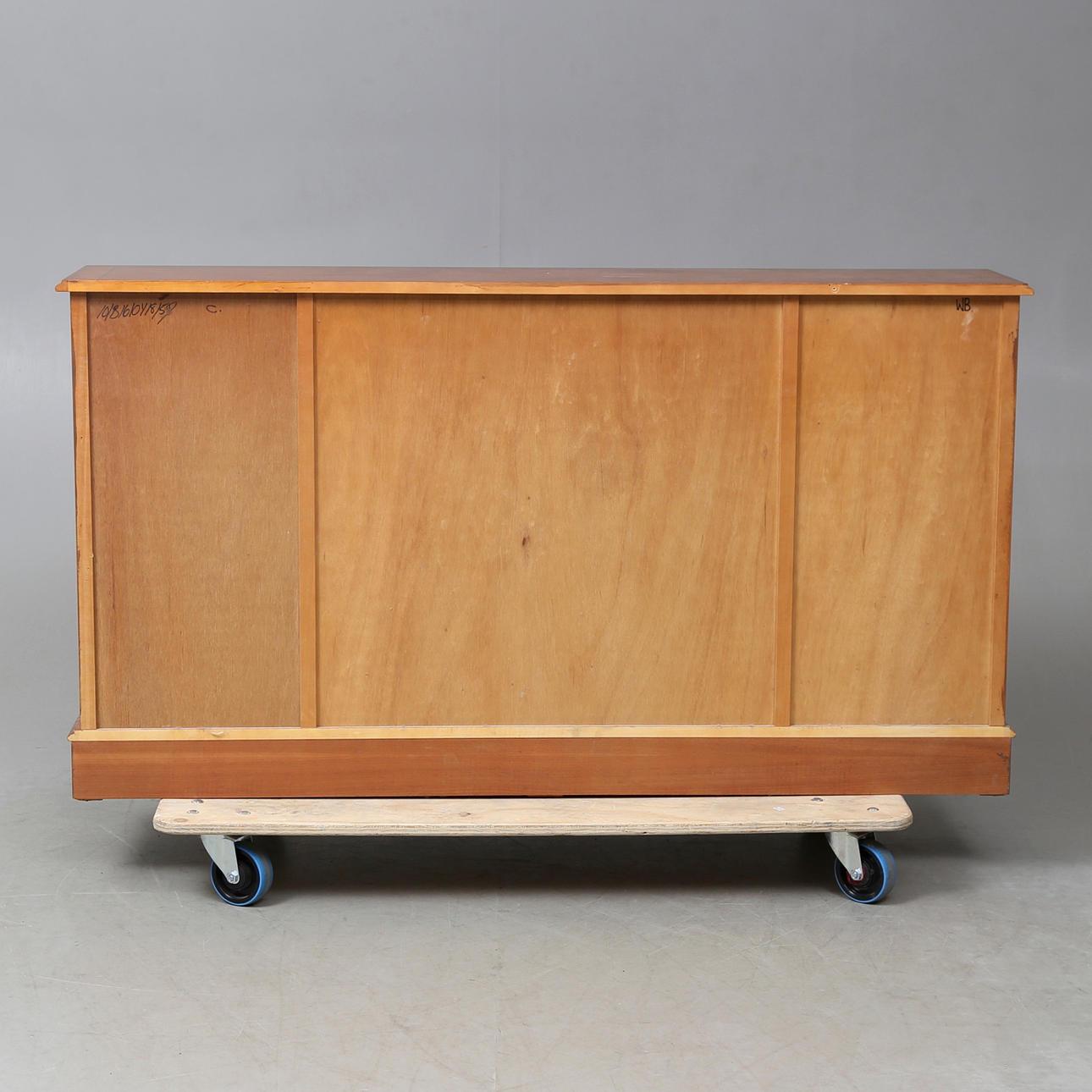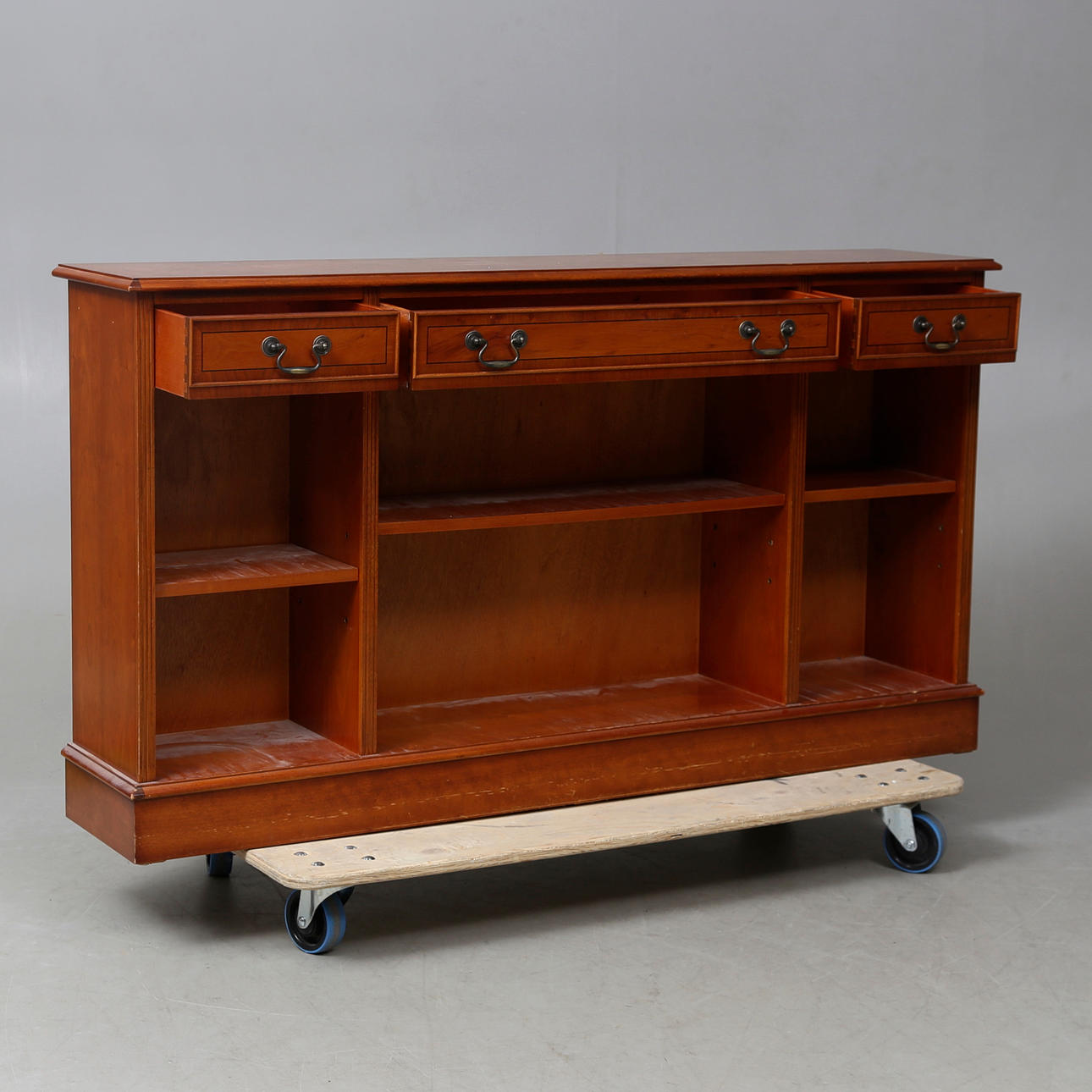 Eibe, Schubladen und Einlegeböden, Länge ca. 152, Breite 31, Höhe 84 cm.