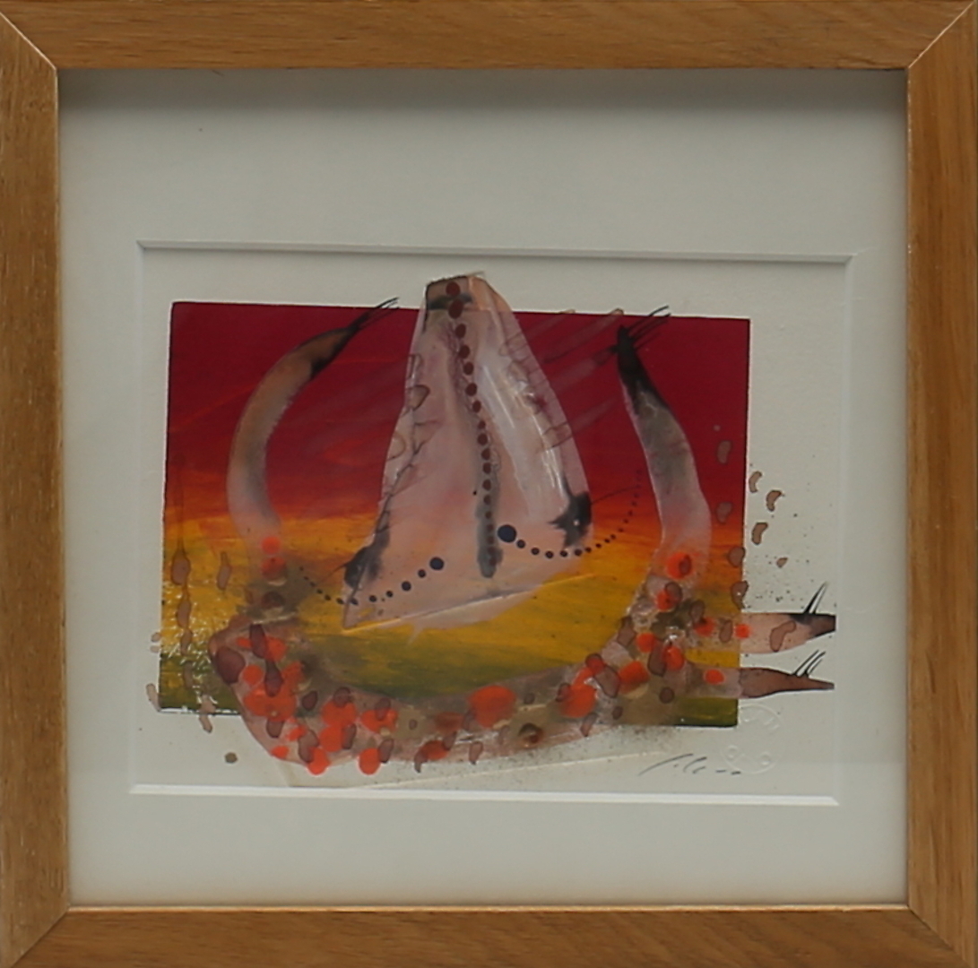 178781. JUAN CANO. Komposition. Mischtechnik mit Blattgold. Unterzeichnet.