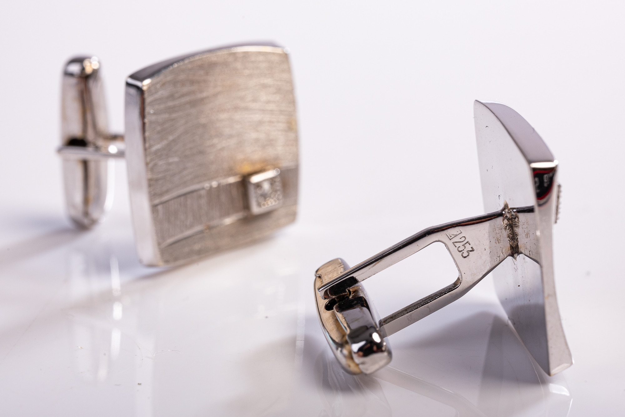 1788409. Manschettenknöpfe, 585er Weißgold, Diamanten.