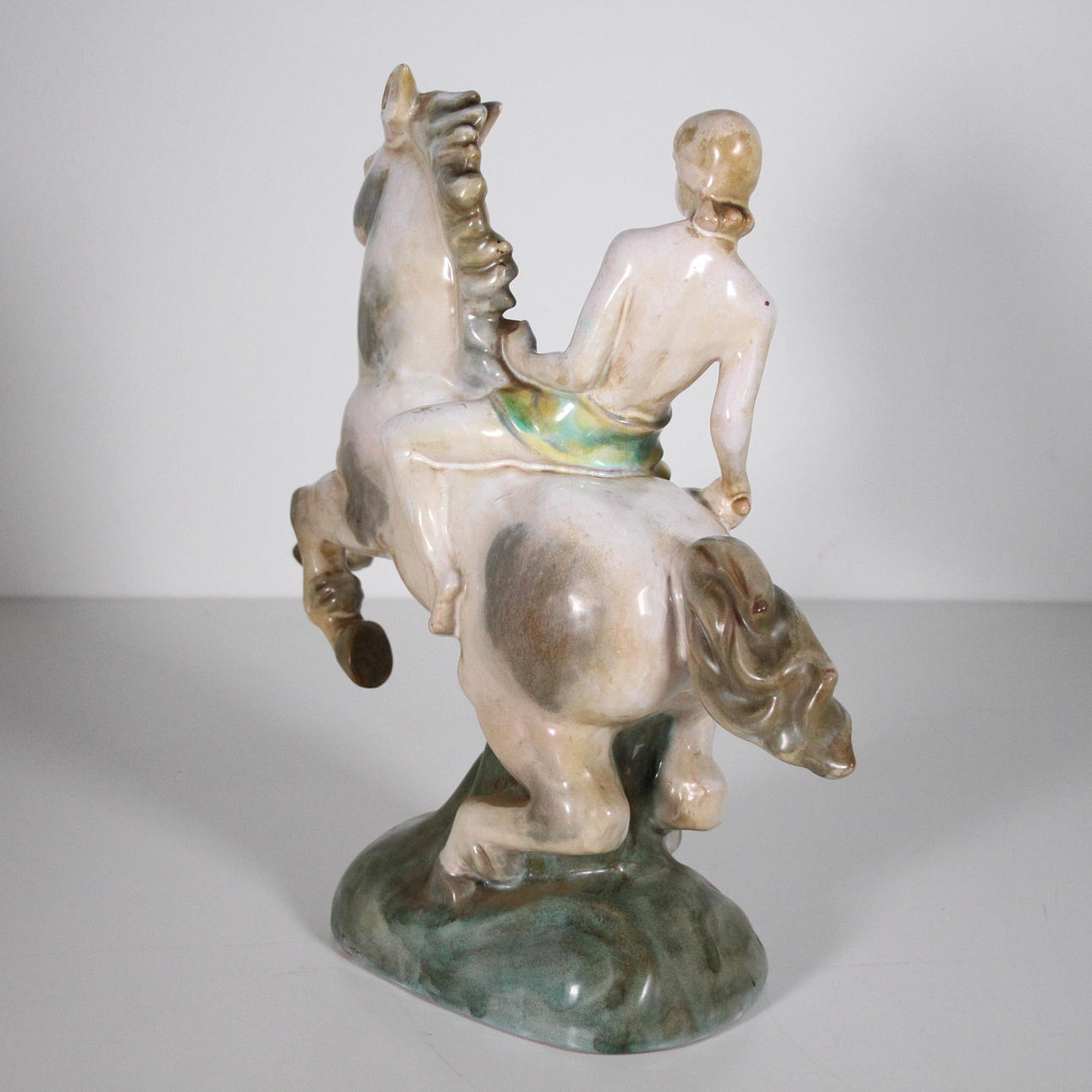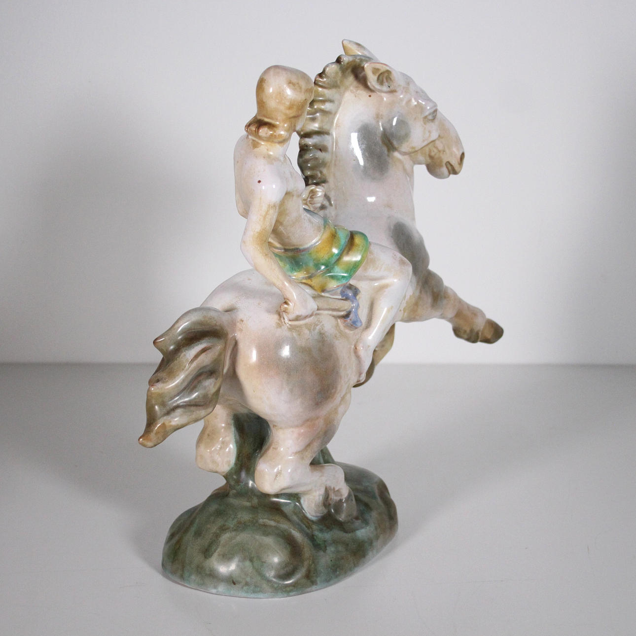 Manufaktur Kalscheuer Frechen, 'Reiterin', Majolika, Keramik, farbig glasiert,