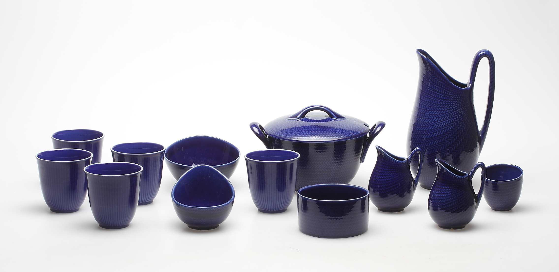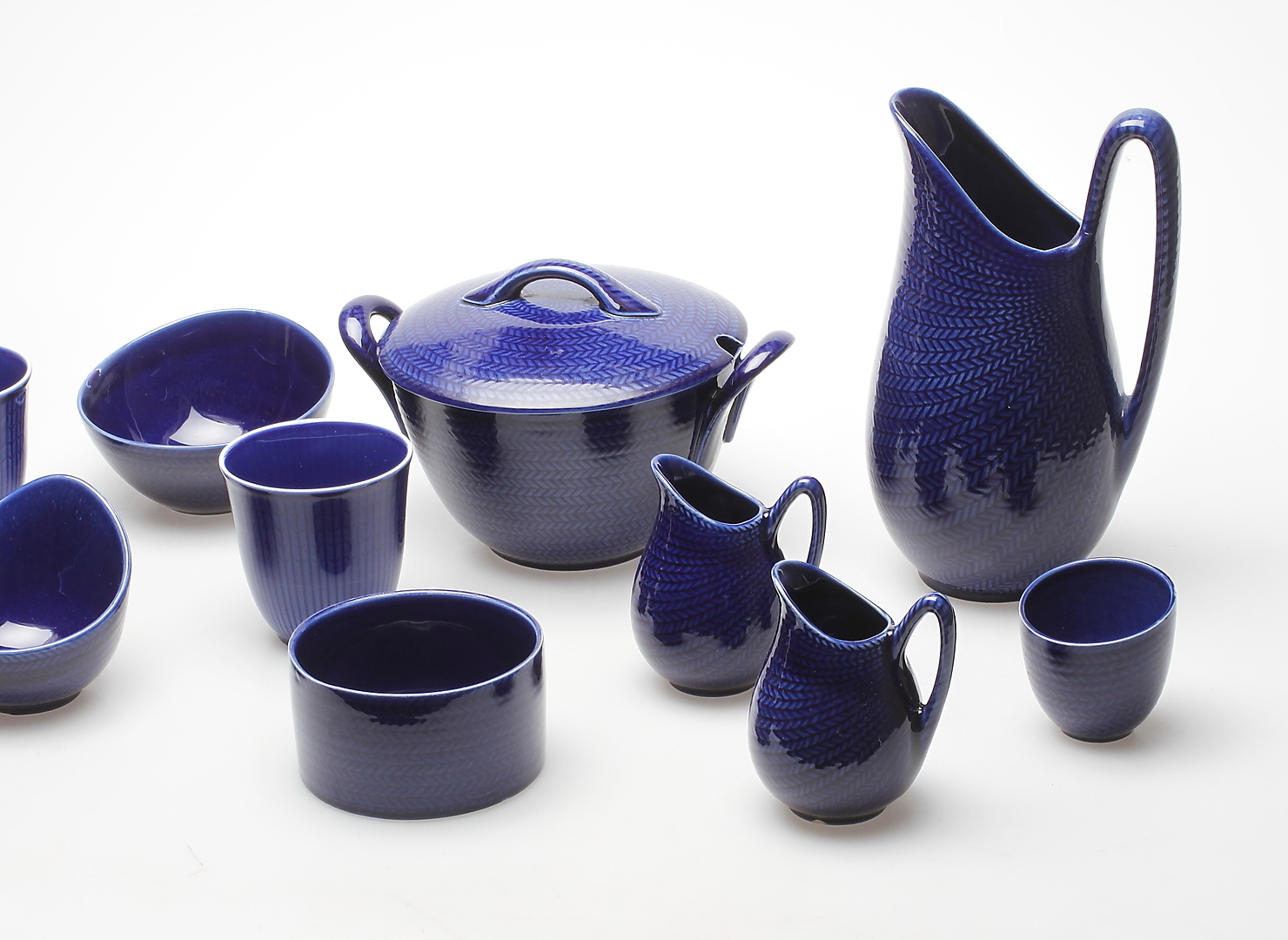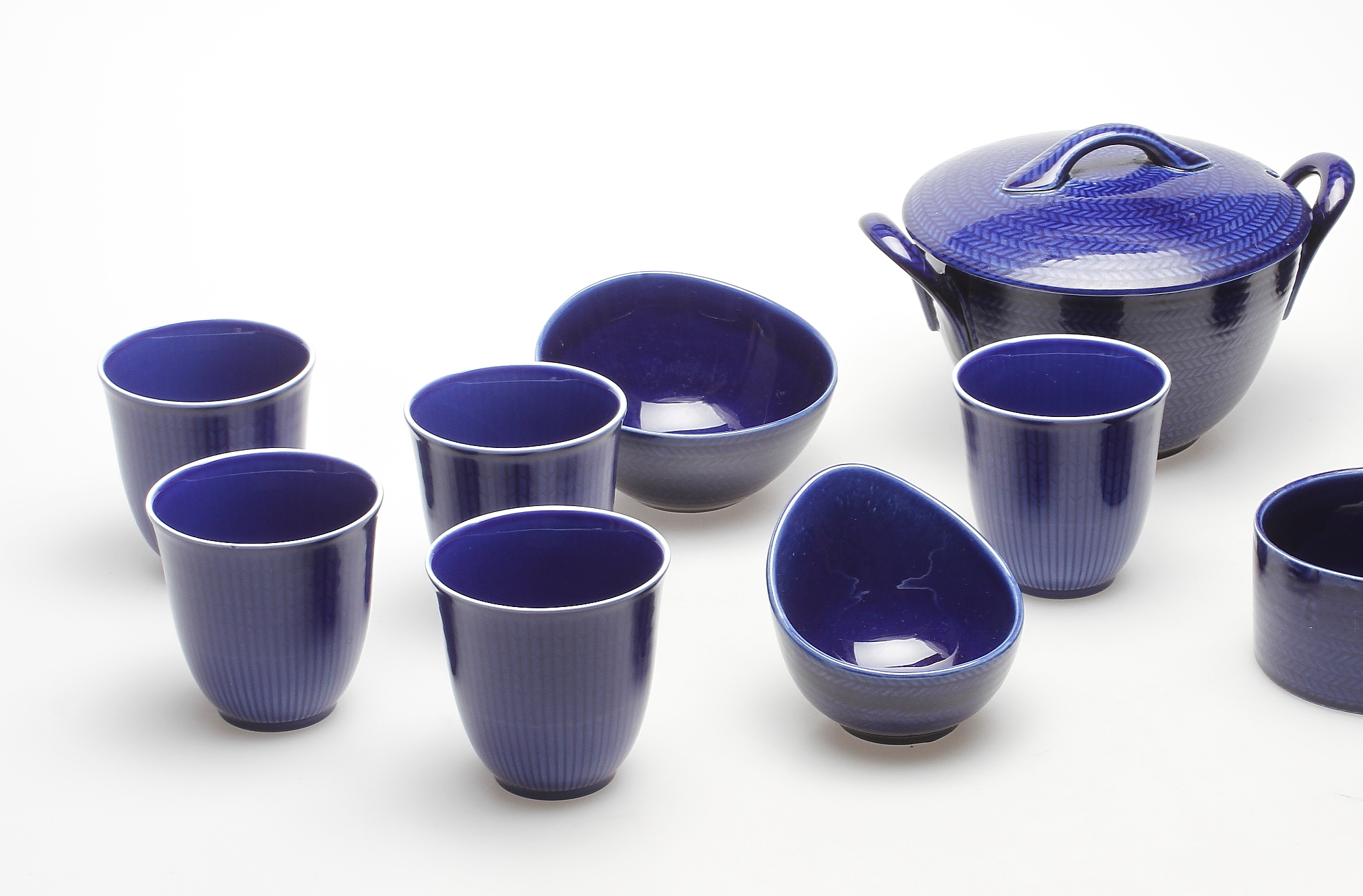 179281. SERVICETEILE, 13 Teile, Feuersteinware, "Blue Fire", Hertha Bengtsson, Rörstrand.