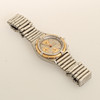 Material auf der Lünette (Ring) Gelbgold, Saphirglas, Zifferblatt in Silber.